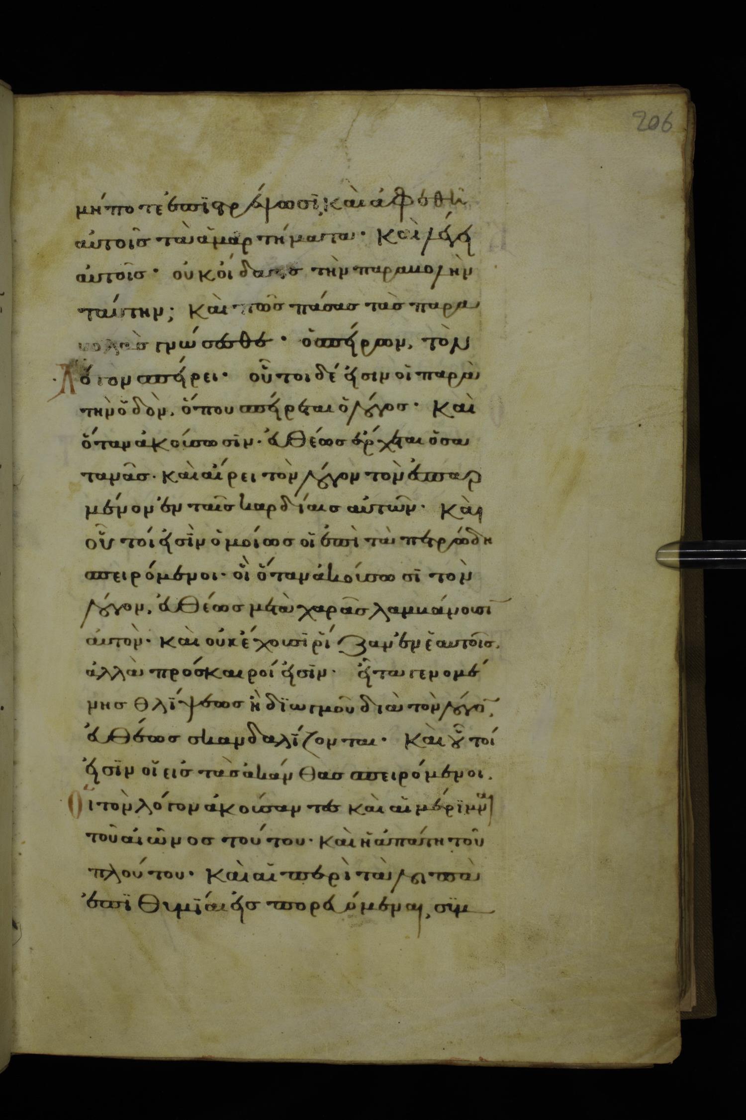 Fourteenth century minuscule of the Gospels on parchment; 332 leaves, 1 column, 20-22 lines per column. Images were taken at the National Library of Greece in Athens.
