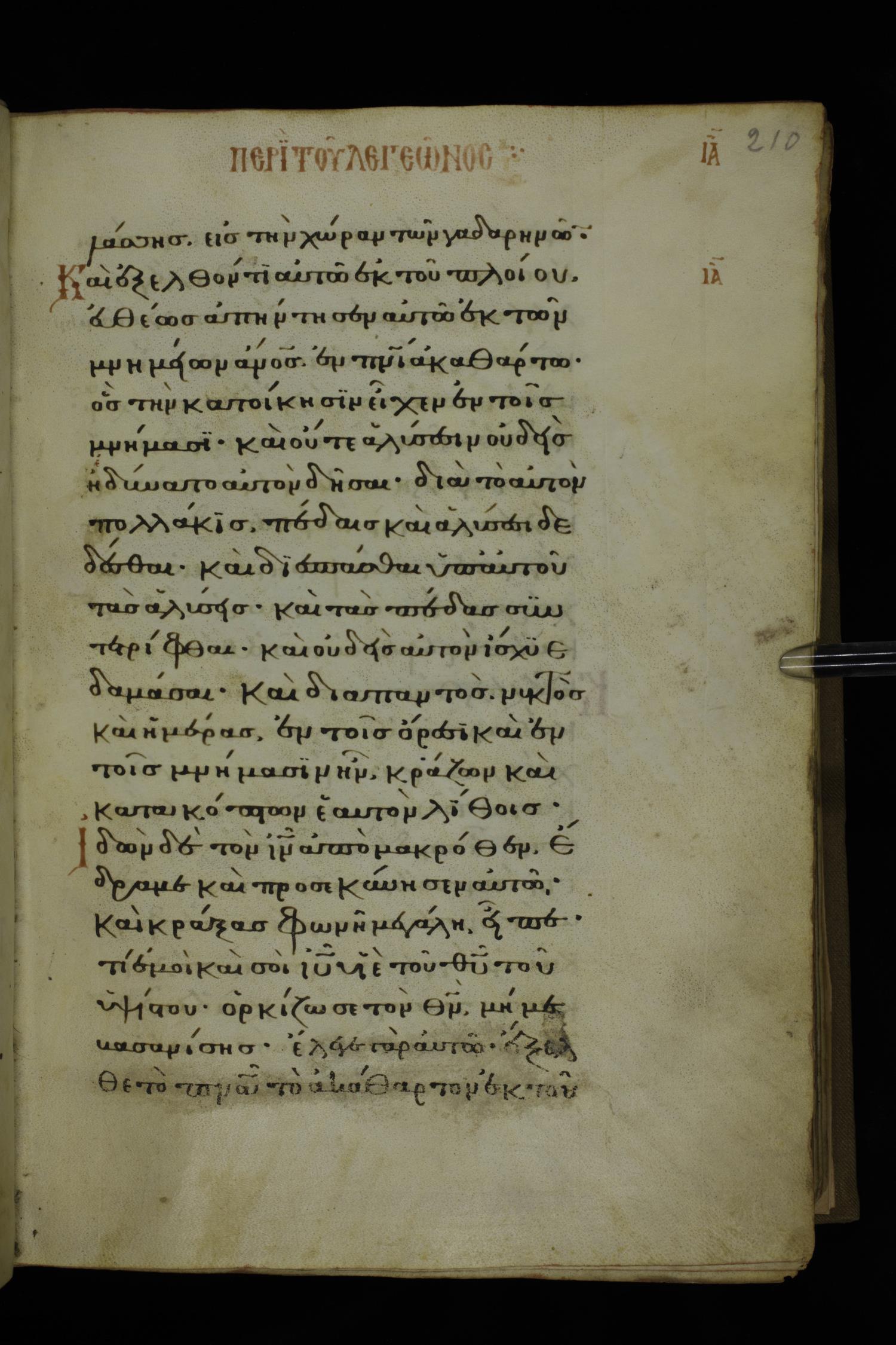 Fourteenth century minuscule of the Gospels on parchment; 332 leaves, 1 column, 20-22 lines per column. Images were taken at the National Library of Greece in Athens.