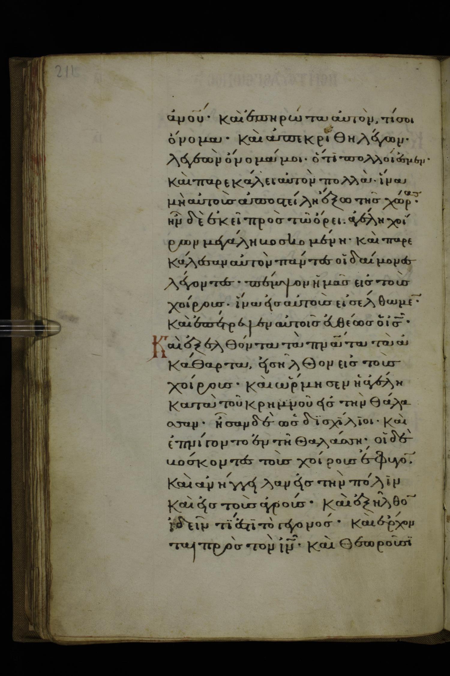 Fourteenth century minuscule of the Gospels on parchment; 332 leaves, 1 column, 20-22 lines per column. Images were taken at the National Library of Greece in Athens.