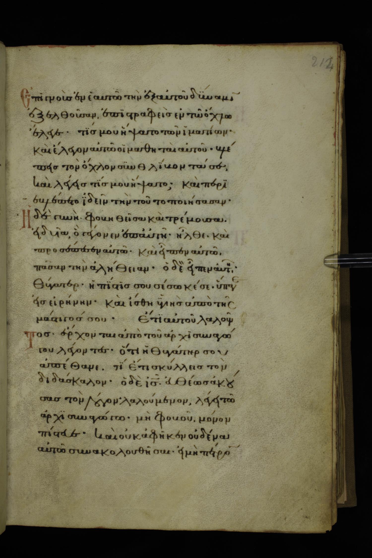 Fourteenth century minuscule of the Gospels on parchment; 332 leaves, 1 column, 20-22 lines per column. Images were taken at the National Library of Greece in Athens.