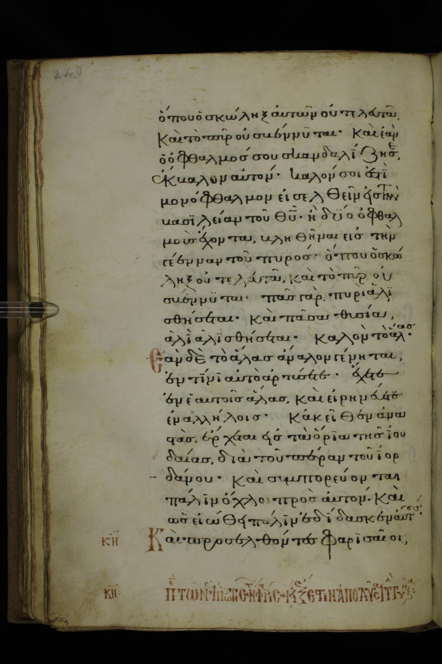 Fourteenth century minuscule of the Gospels on parchment; 332 leaves, 1 column, 20-22 lines per column. Images were taken at the National Library of Greece in Athens.