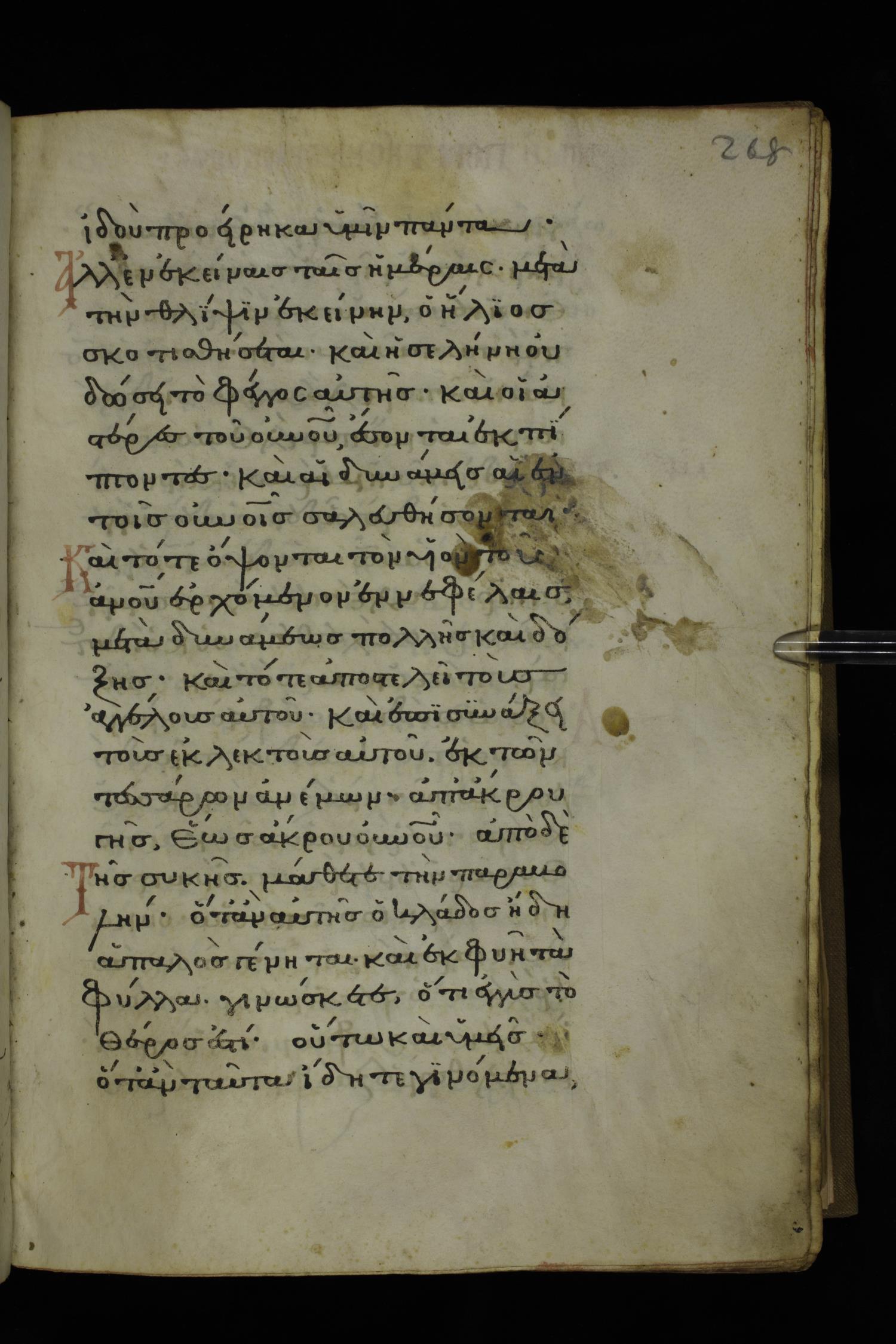 Fourteenth century minuscule of the Gospels on parchment; 332 leaves, 1 column, 20-22 lines per column. Images were taken at the National Library of Greece in Athens.