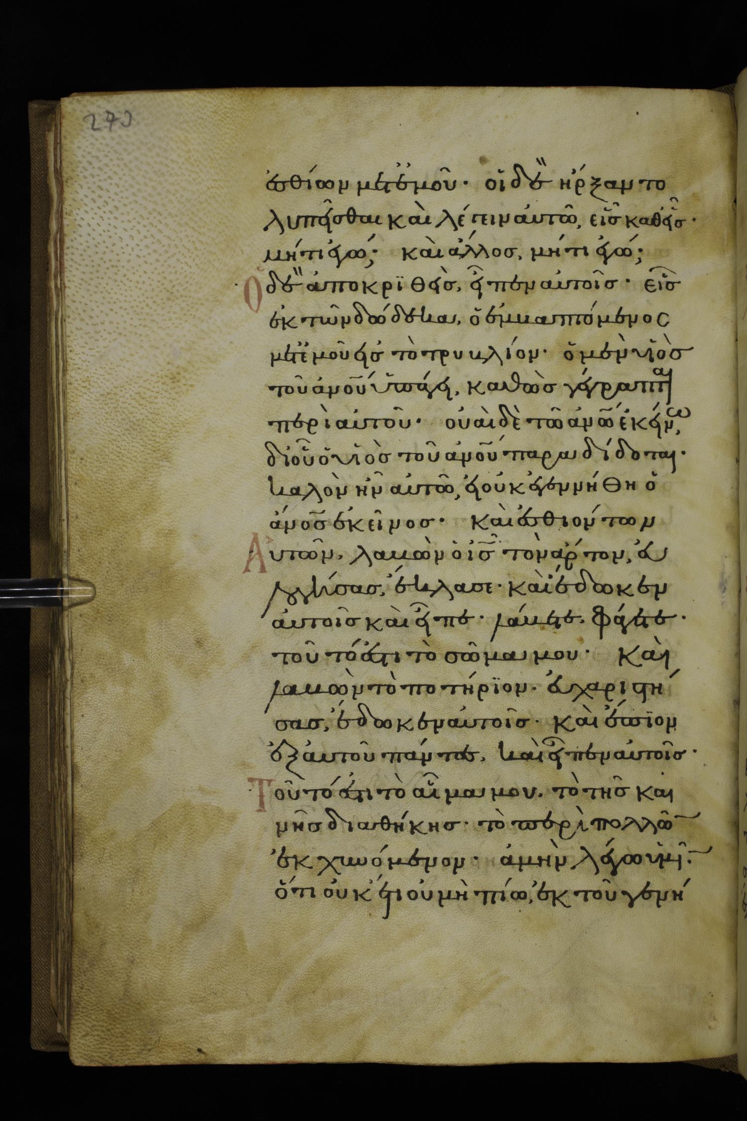 Fourteenth century minuscule of the Gospels on parchment; 332 leaves, 1 column, 20-22 lines per column. Images were taken at the National Library of Greece in Athens.