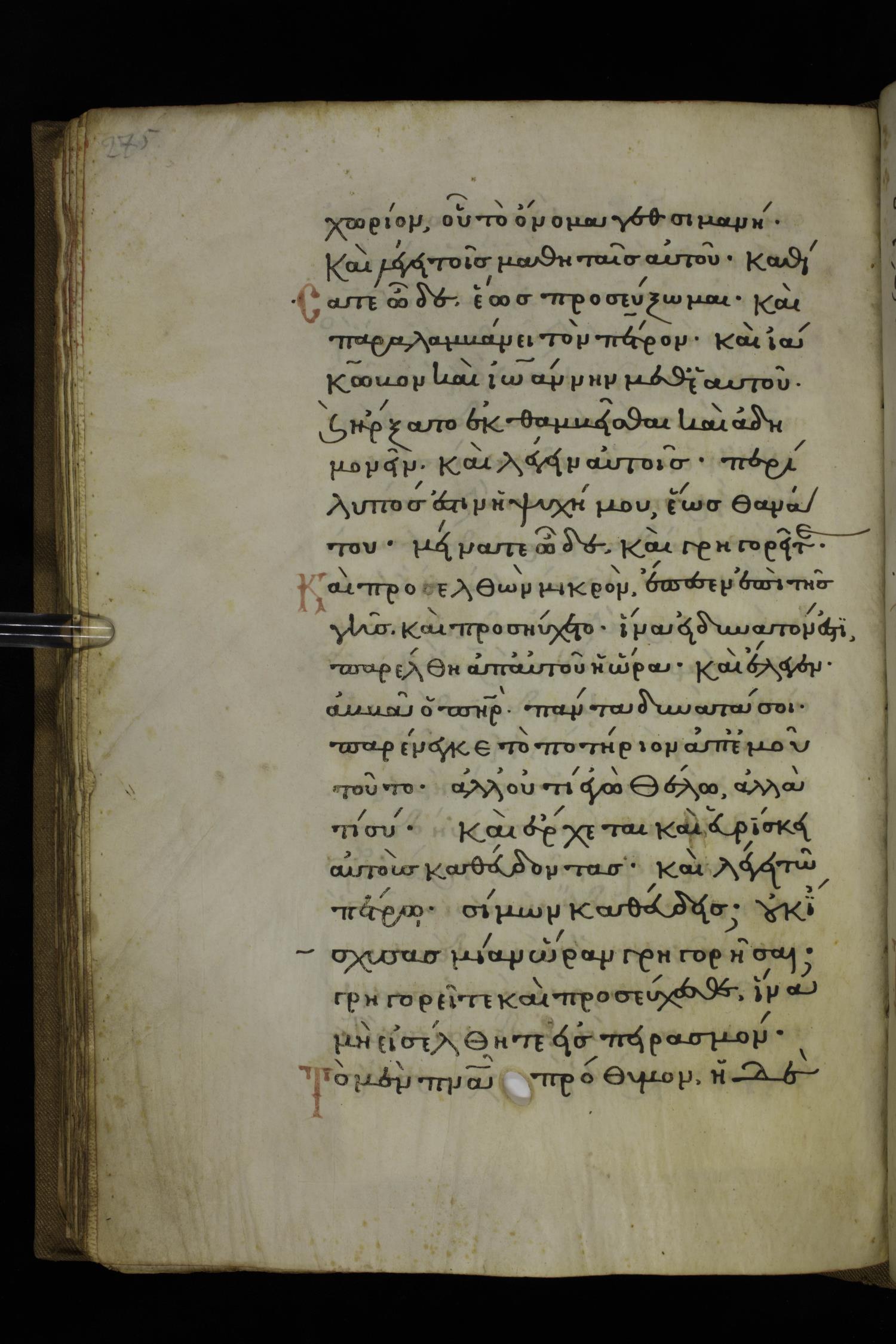 Fourteenth century minuscule of the Gospels on parchment; 332 leaves, 1 column, 20-22 lines per column. Images were taken at the National Library of Greece in Athens.