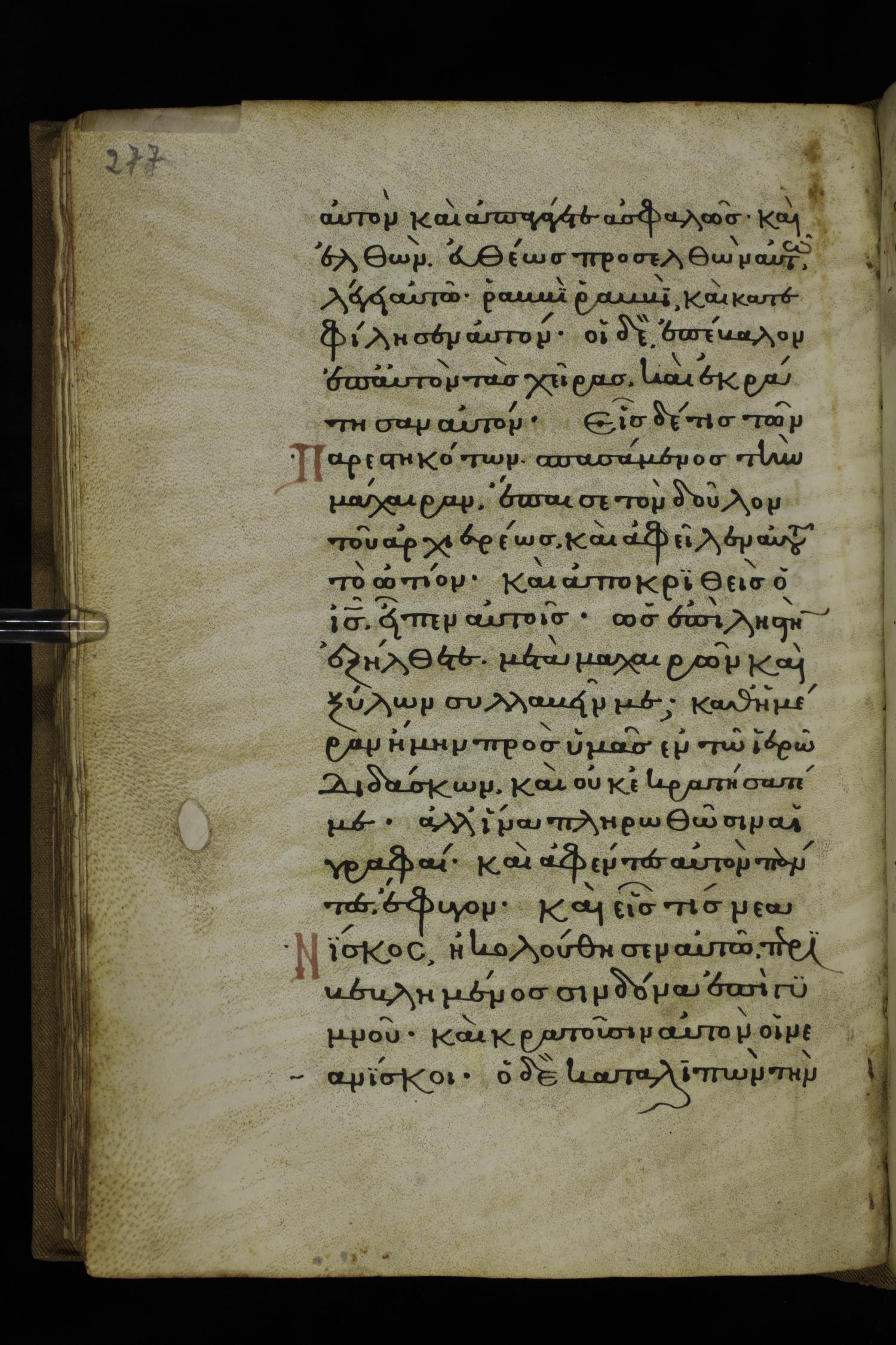 Fourteenth century minuscule of the Gospels on parchment; 332 leaves, 1 column, 20-22 lines per column. Images were taken at the National Library of Greece in Athens.