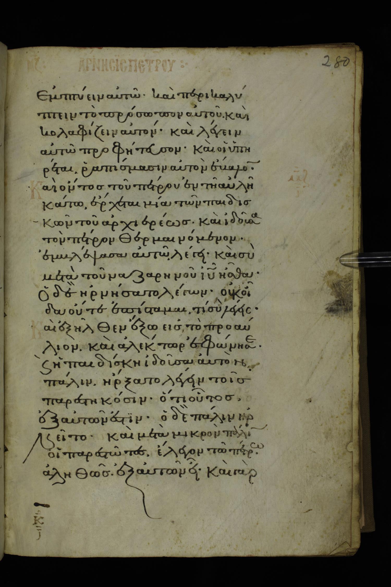 Fourteenth century minuscule of the Gospels on parchment; 332 leaves, 1 column, 20-22 lines per column. Images were taken at the National Library of Greece in Athens.