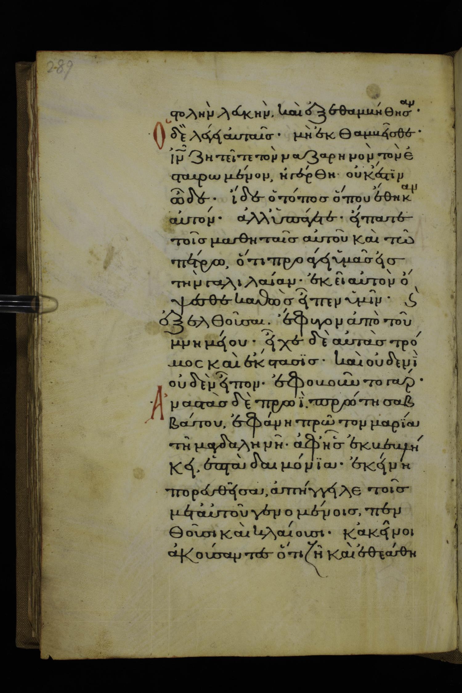 Fourteenth century minuscule of the Gospels on parchment; 332 leaves, 1 column, 20-22 lines per column. Images were taken at the National Library of Greece in Athens.