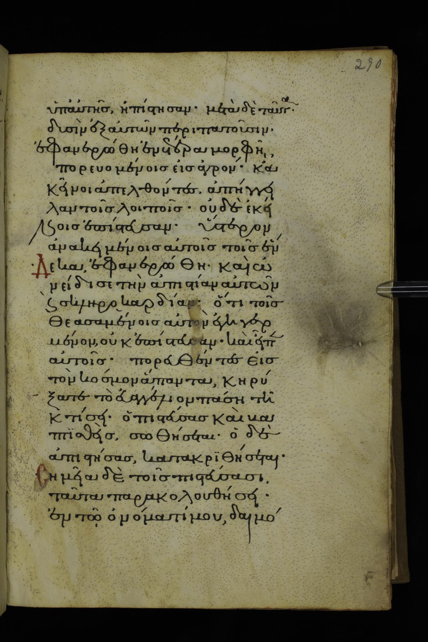Fourteenth century minuscule of the Gospels on parchment; 332 leaves, 1 column, 20-22 lines per column. Images were taken at the National Library of Greece in Athens.