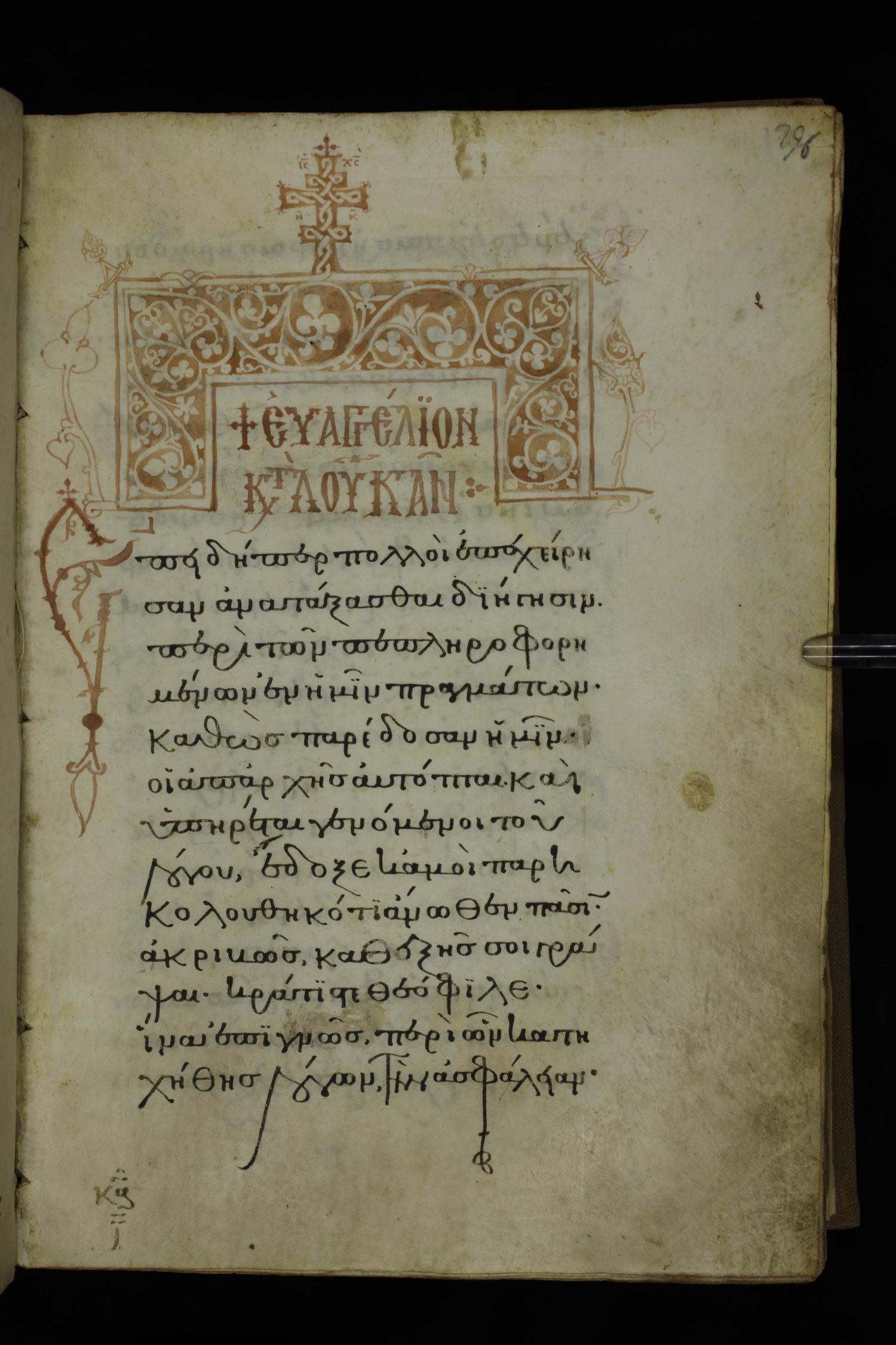 Fourteenth century minuscule of the Gospels on parchment; 332 leaves, 1 column, 20-22 lines per column. Images were taken at the National Library of Greece in Athens.