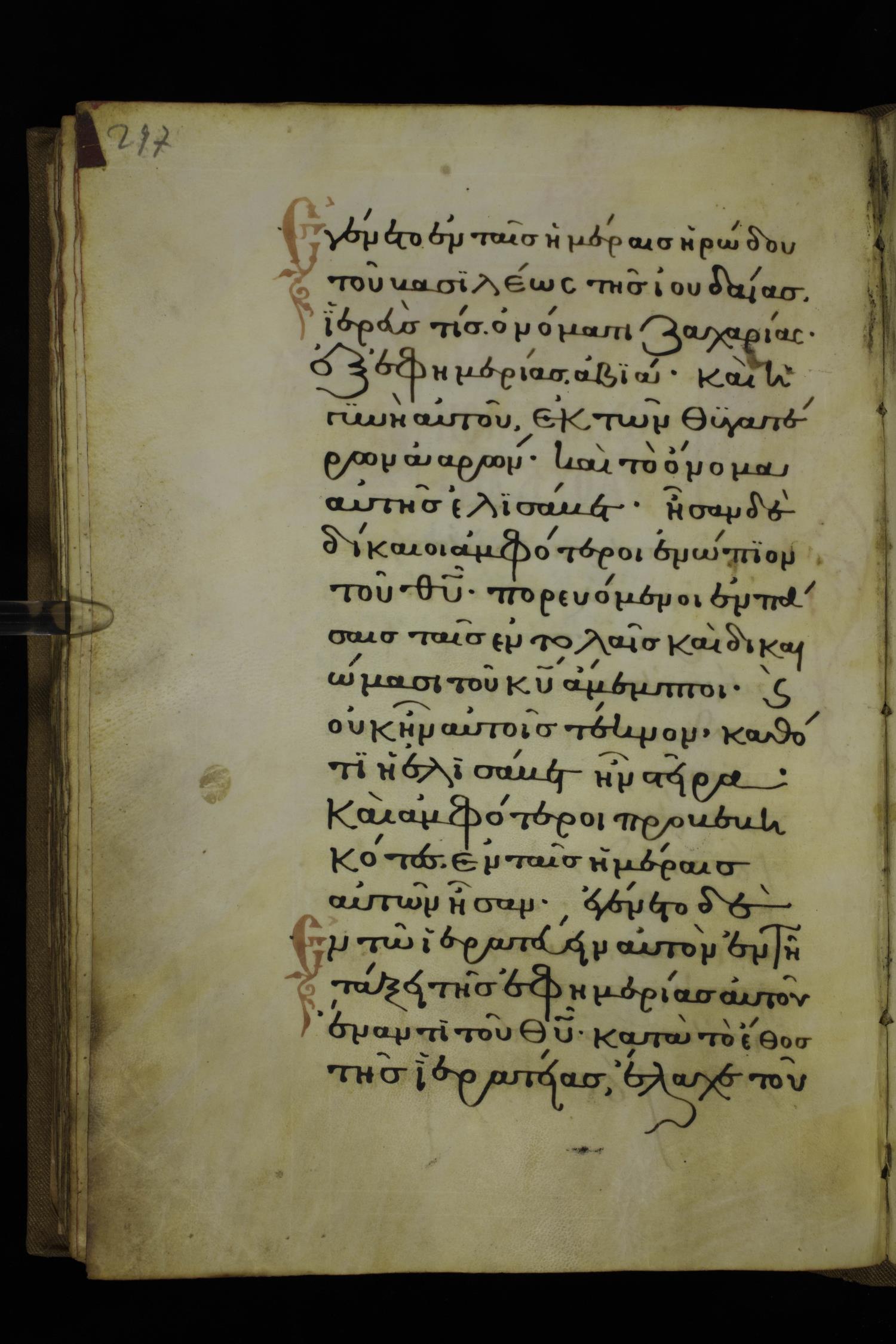 Fourteenth century minuscule of the Gospels on parchment; 332 leaves, 1 column, 20-22 lines per column. Images were taken at the National Library of Greece in Athens.