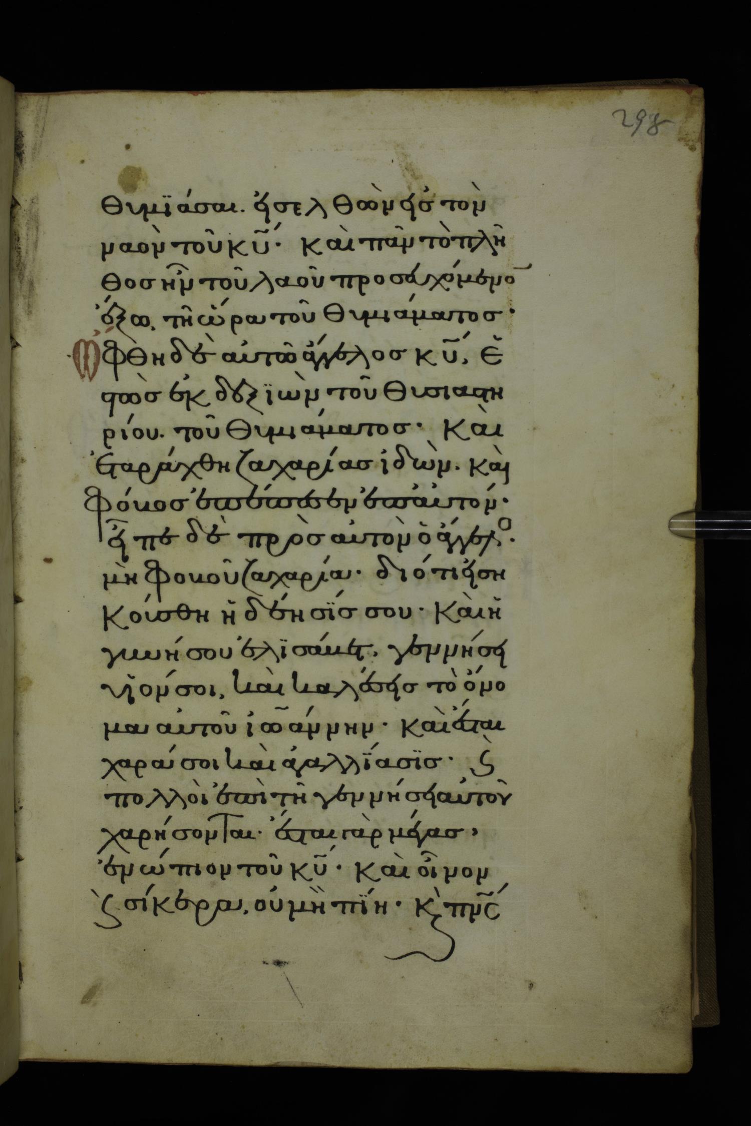 Fourteenth century minuscule of the Gospels on parchment; 332 leaves, 1 column, 20-22 lines per column. Images were taken at the National Library of Greece in Athens.