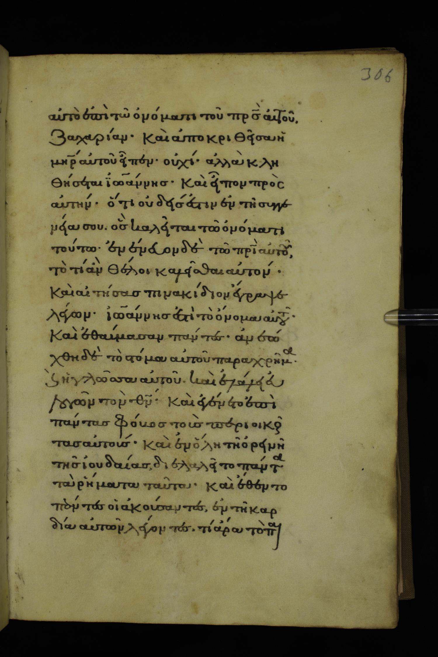 Fourteenth century minuscule of the Gospels on parchment; 332 leaves, 1 column, 20-22 lines per column. Images were taken at the National Library of Greece in Athens.