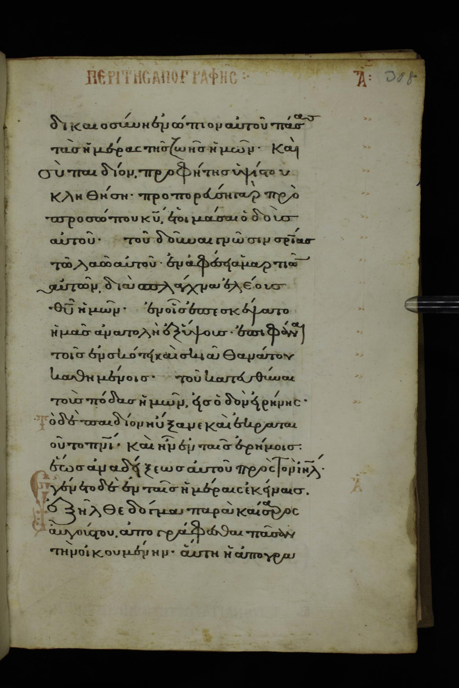 Fourteenth century minuscule of the Gospels on parchment; 332 leaves, 1 column, 20-22 lines per column. Images were taken at the National Library of Greece in Athens.