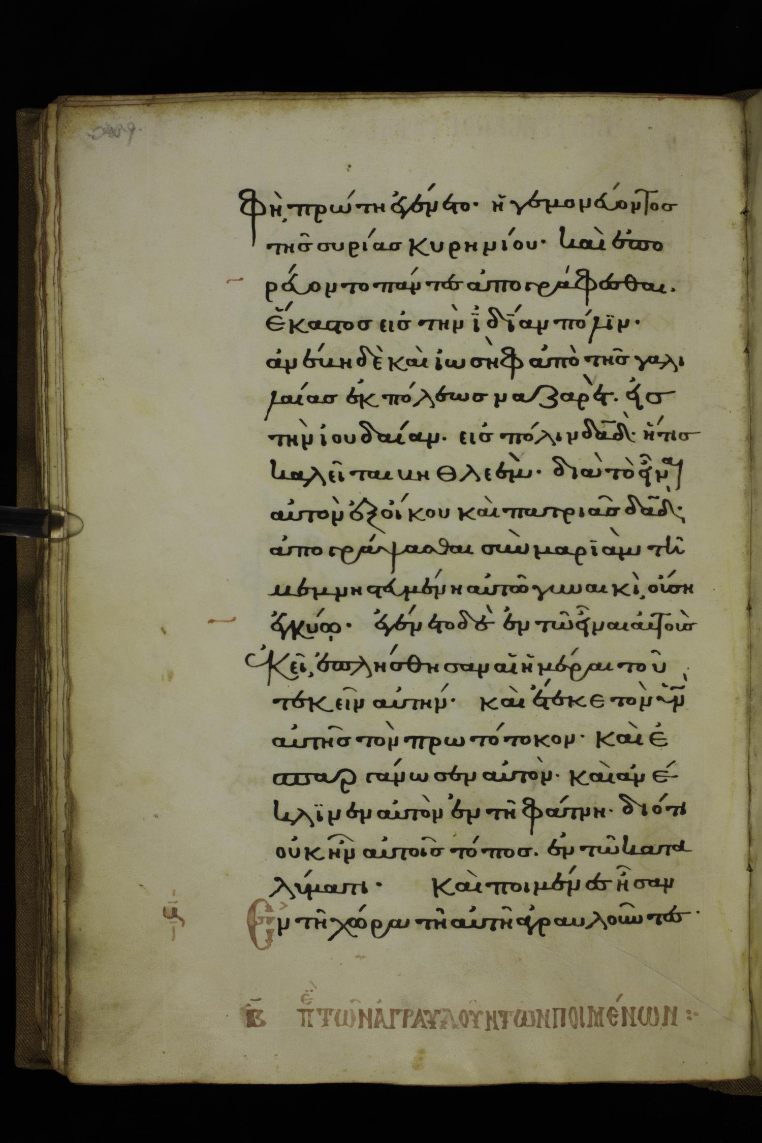 Fourteenth century minuscule of the Gospels on parchment; 332 leaves, 1 column, 20-22 lines per column. Images were taken at the National Library of Greece in Athens.