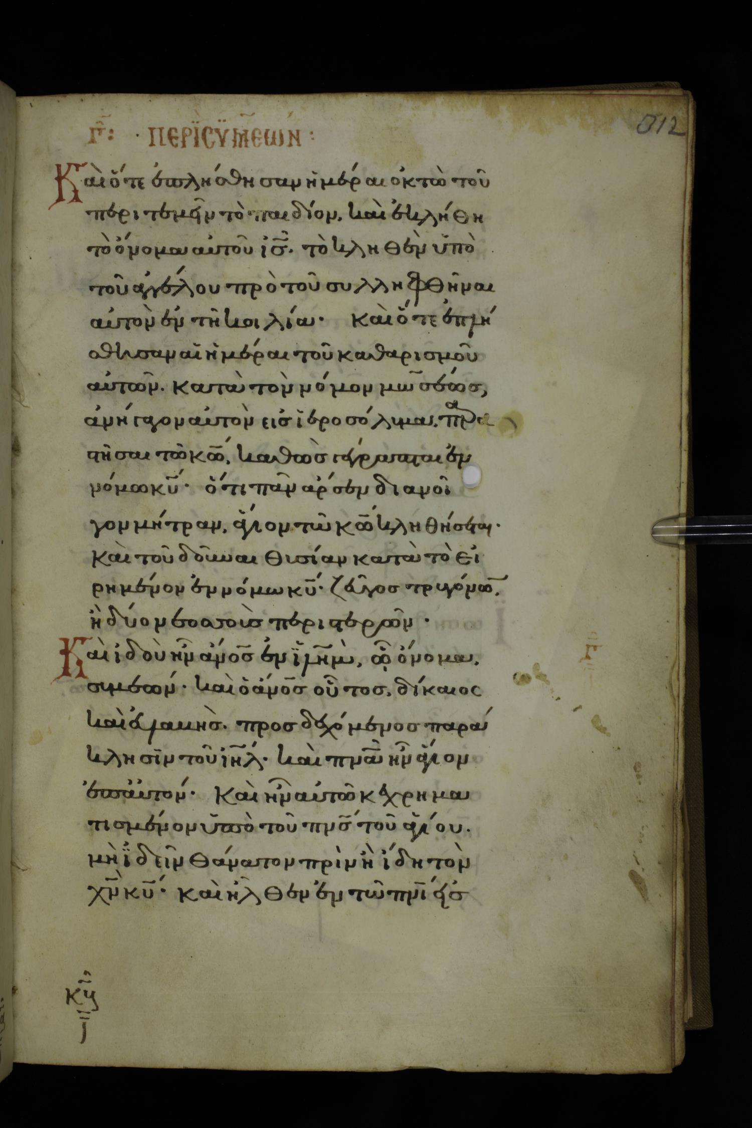 Fourteenth century minuscule of the Gospels on parchment; 332 leaves, 1 column, 20-22 lines per column. Images were taken at the National Library of Greece in Athens.
