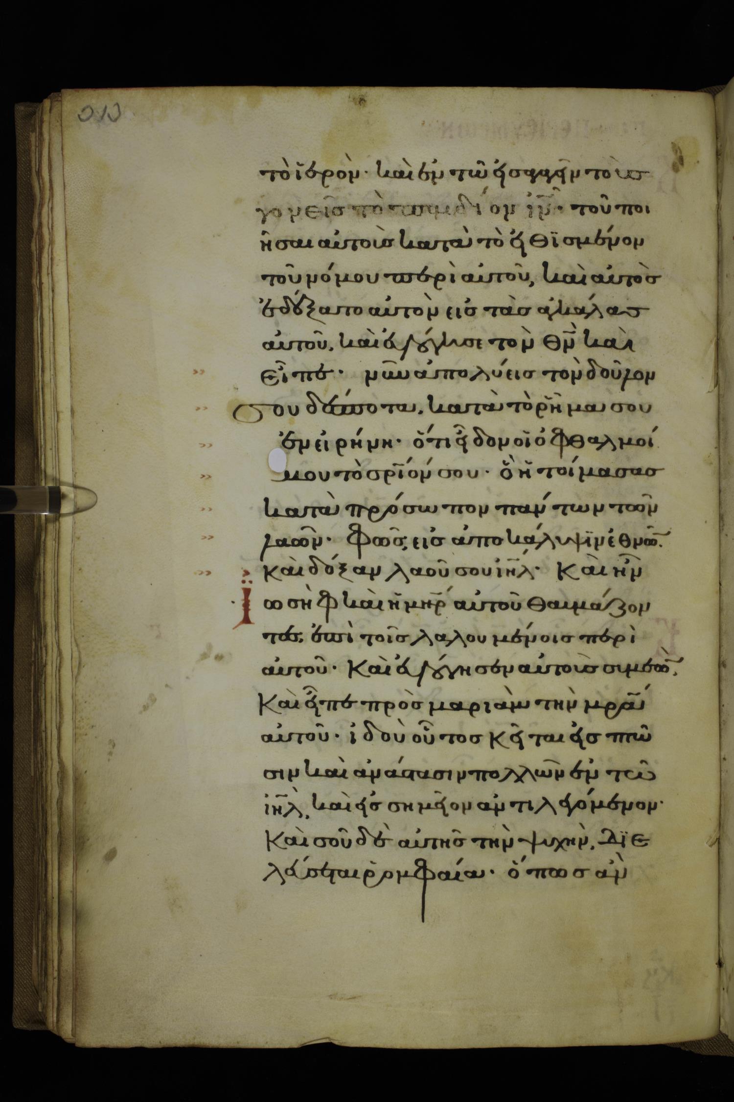 Fourteenth century minuscule of the Gospels on parchment; 332 leaves, 1 column, 20-22 lines per column. Images were taken at the National Library of Greece in Athens.