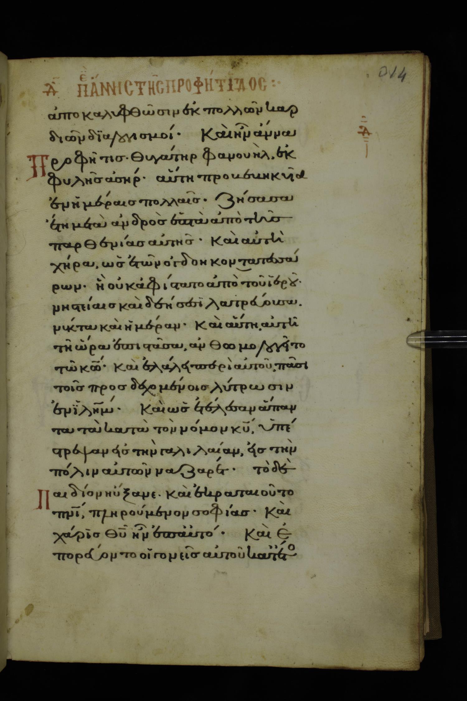 Fourteenth century minuscule of the Gospels on parchment; 332 leaves, 1 column, 20-22 lines per column. Images were taken at the National Library of Greece in Athens.