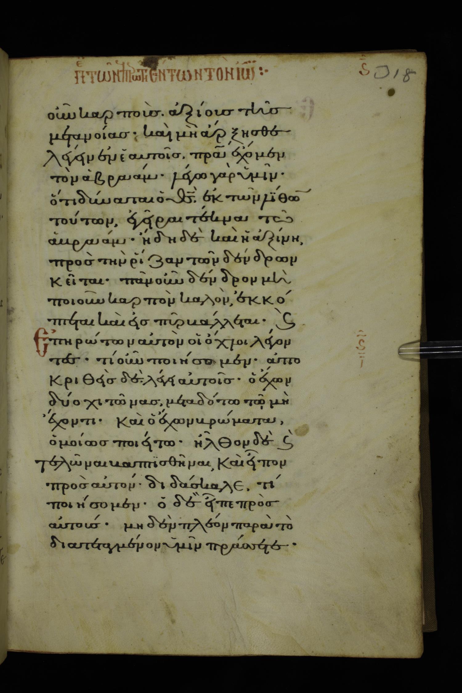 Fourteenth century minuscule of the Gospels on parchment; 332 leaves, 1 column, 20-22 lines per column. Images were taken at the National Library of Greece in Athens.