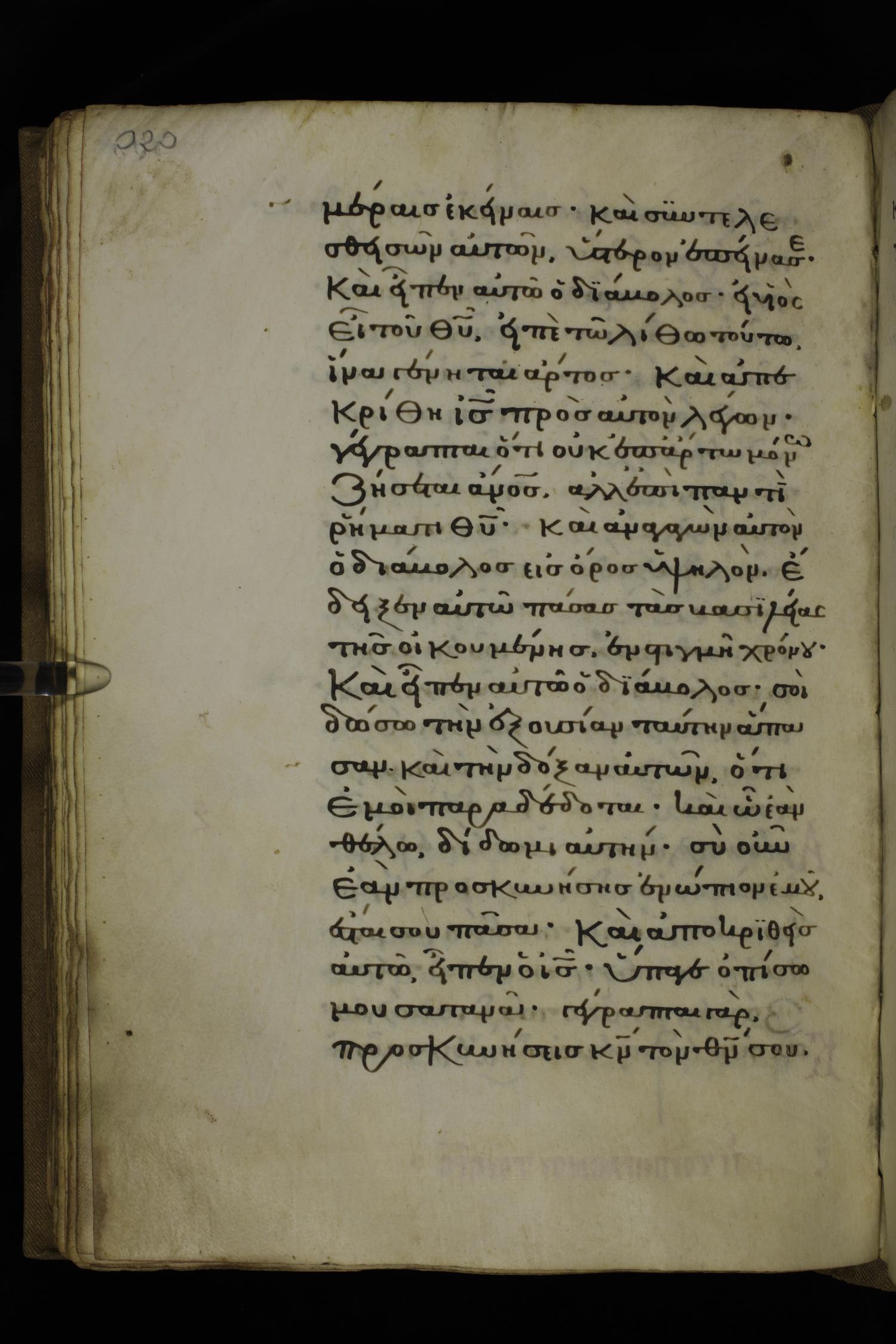 εἶπεν δὲ αὐτῷ ὁ διάβολος Εἰ υἱὸς εἶ τοῦ θεοῦ, εἰπὲ τῷ λίθῳ τούτῳ ἵνα γένηται ἄρτος.