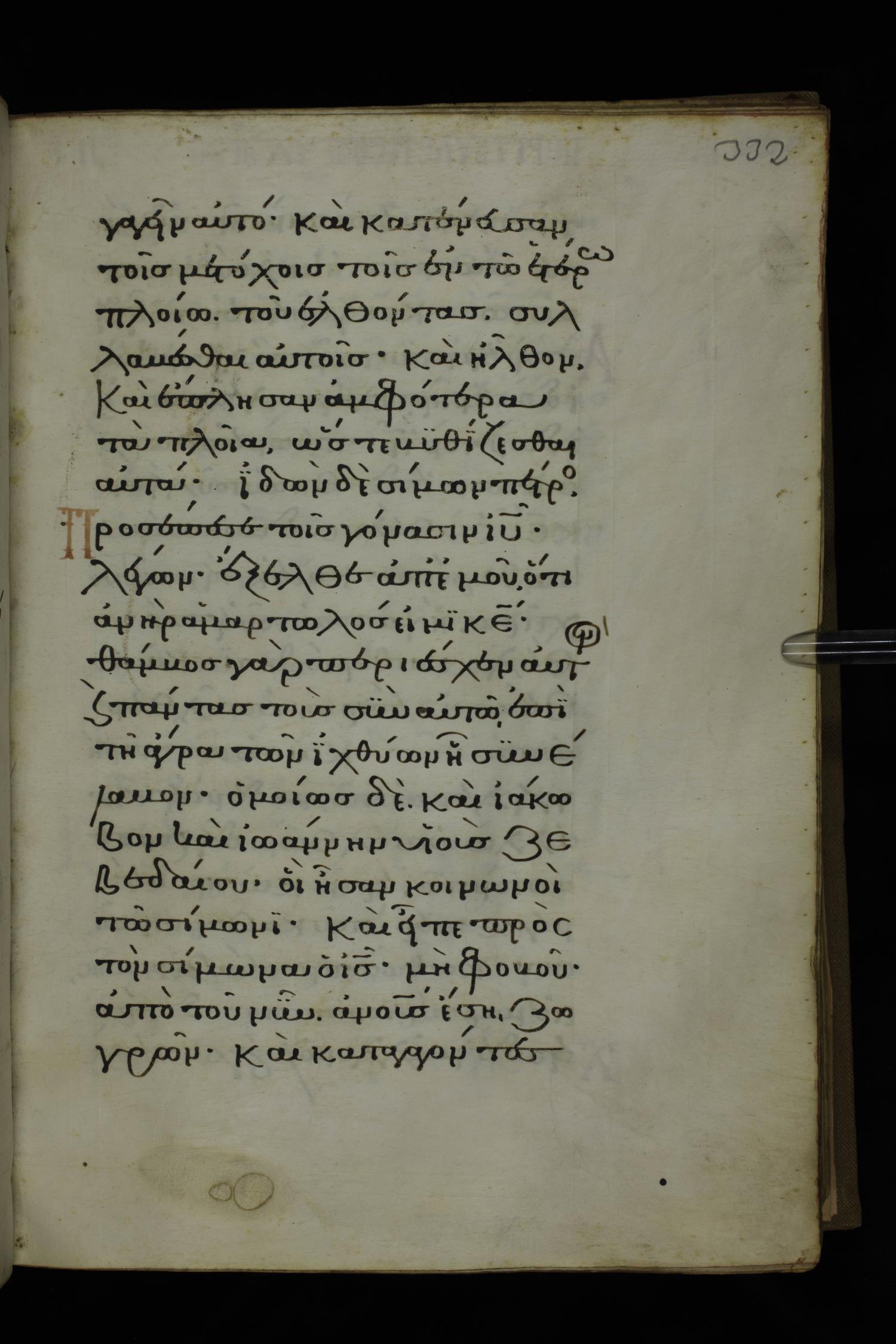 Fourteenth century minuscule of the Gospels on parchment; 332 leaves, 1 column, 20-22 lines per column. Images were taken at the National Library of Greece in Athens.