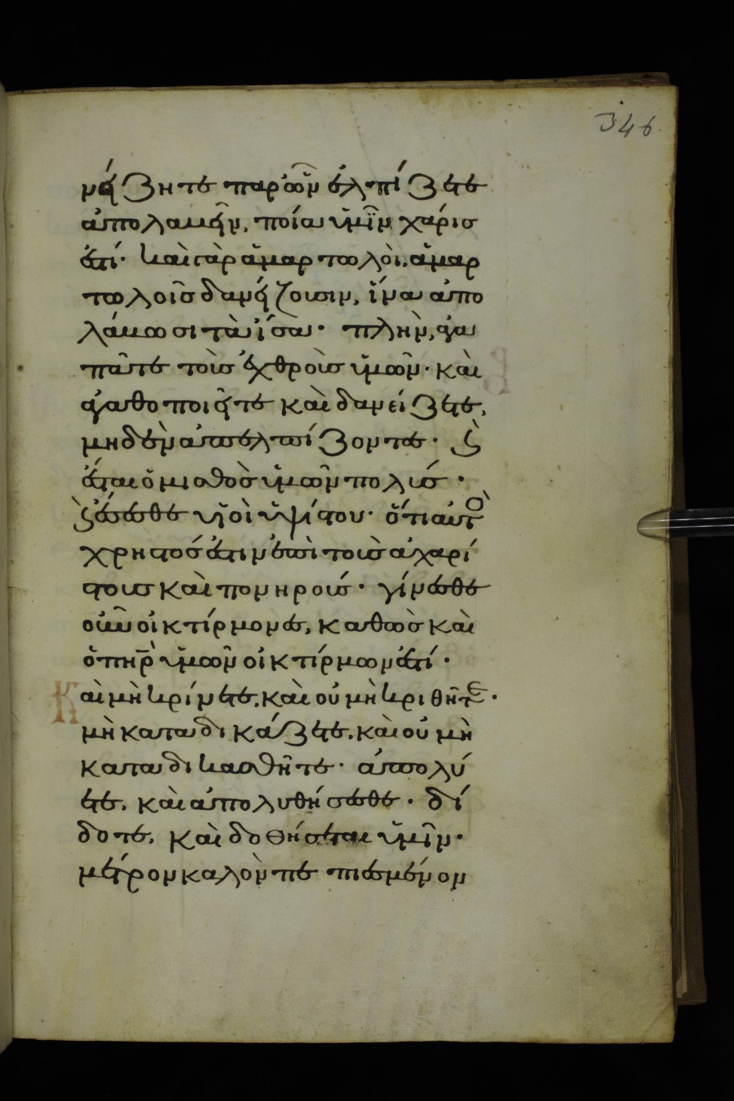 Fourteenth century minuscule of the Gospels on parchment; 332 leaves, 1 column, 20-22 lines per column. Images were taken at the National Library of Greece in Athens.