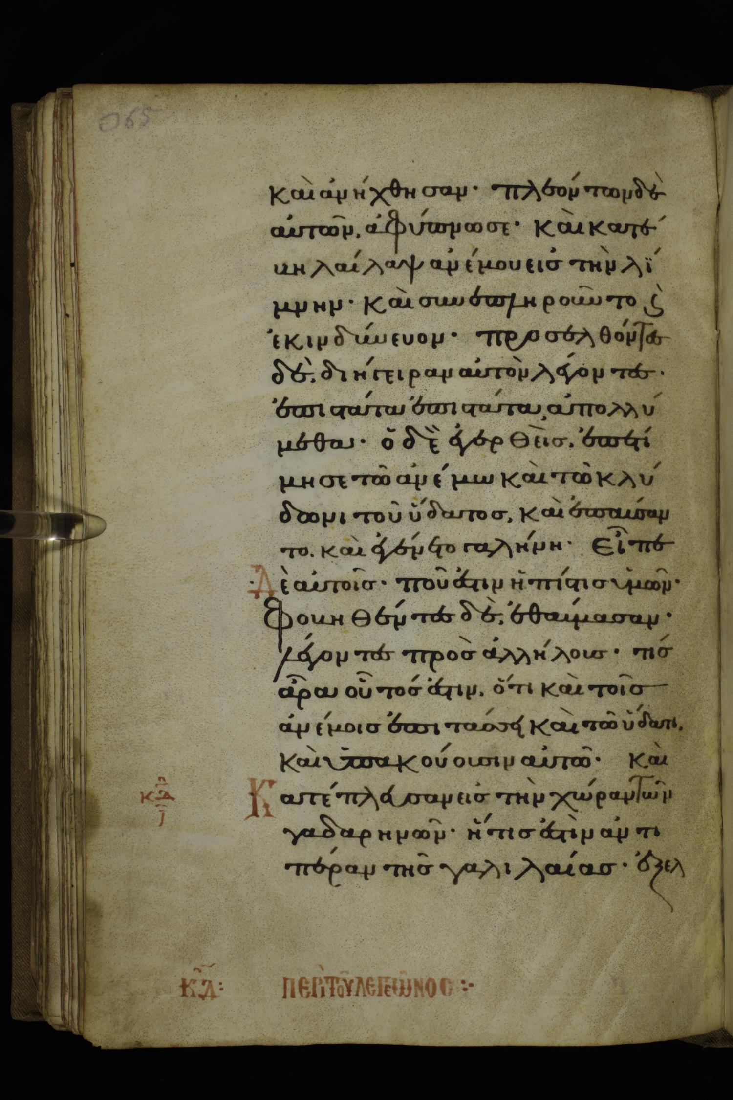 Fourteenth century minuscule of the Gospels on parchment; 332 leaves, 1 column, 20-22 lines per column. Images were taken at the National Library of Greece in Athens.