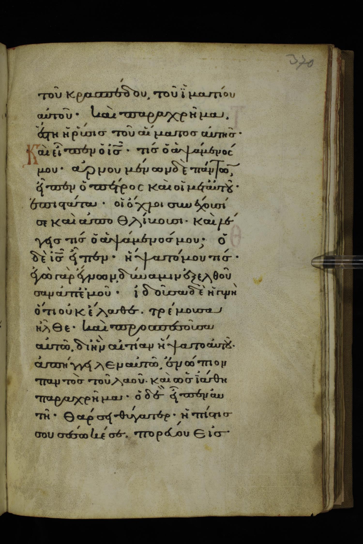 Fourteenth century minuscule of the Gospels on parchment; 332 leaves, 1 column, 20-22 lines per column. Images were taken at the National Library of Greece in Athens.