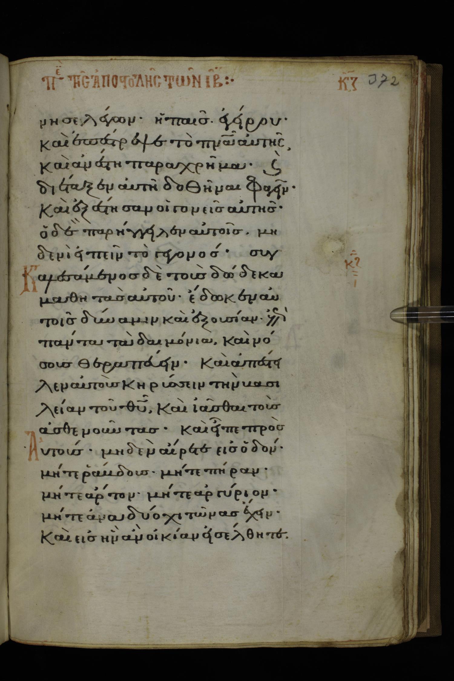 Fourteenth century minuscule of the Gospels on parchment; 332 leaves, 1 column, 20-22 lines per column. Images were taken at the National Library of Greece in Athens.