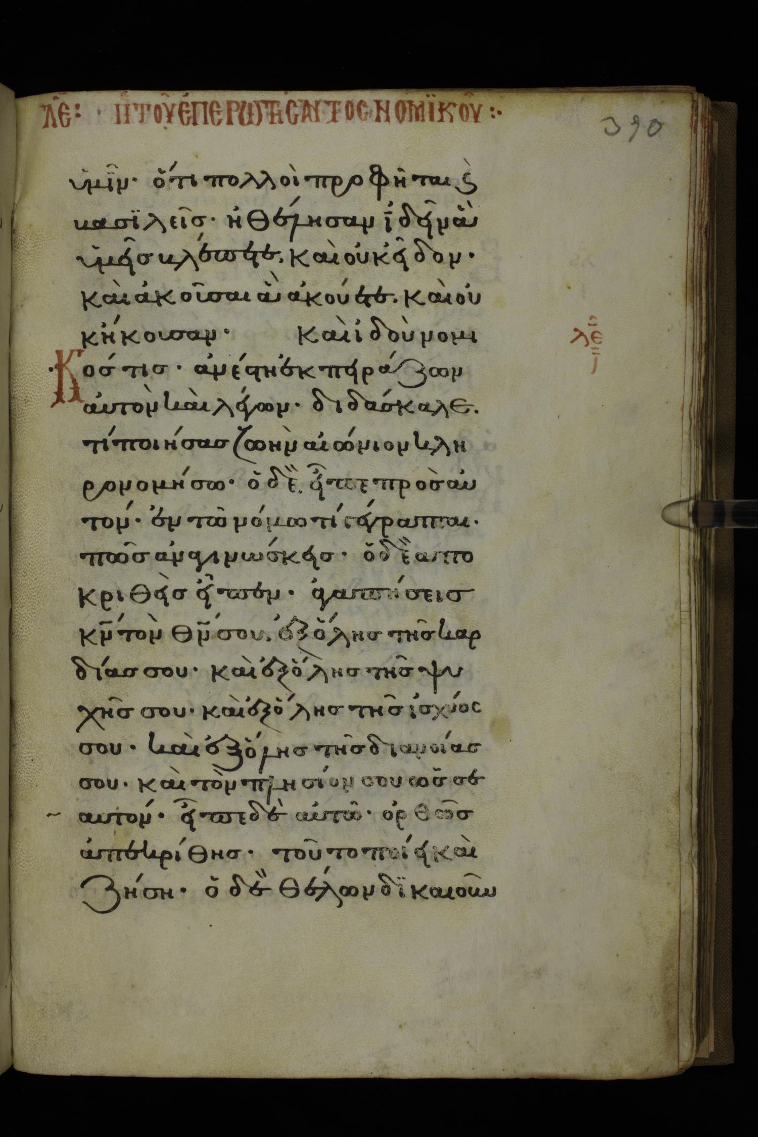 Fourteenth century minuscule of the Gospels on parchment; 332 leaves, 1 column, 20-22 lines per column. Images were taken at the National Library of Greece in Athens.