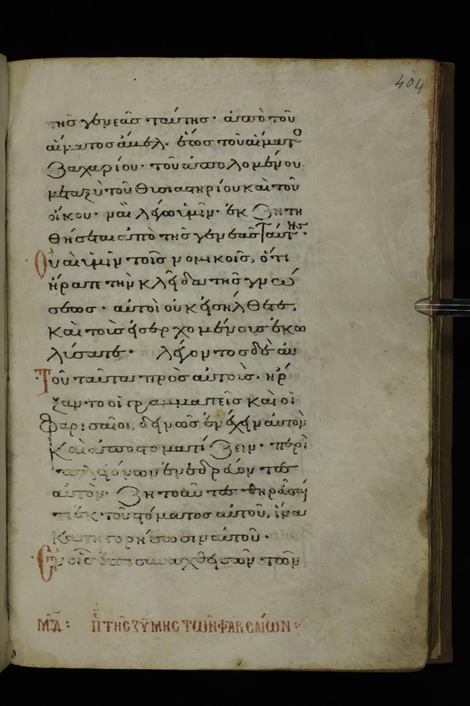 Fourteenth century minuscule of the Gospels on parchment; 332 leaves, 1 column, 20-22 lines per column. Images were taken at the National Library of Greece in Athens.