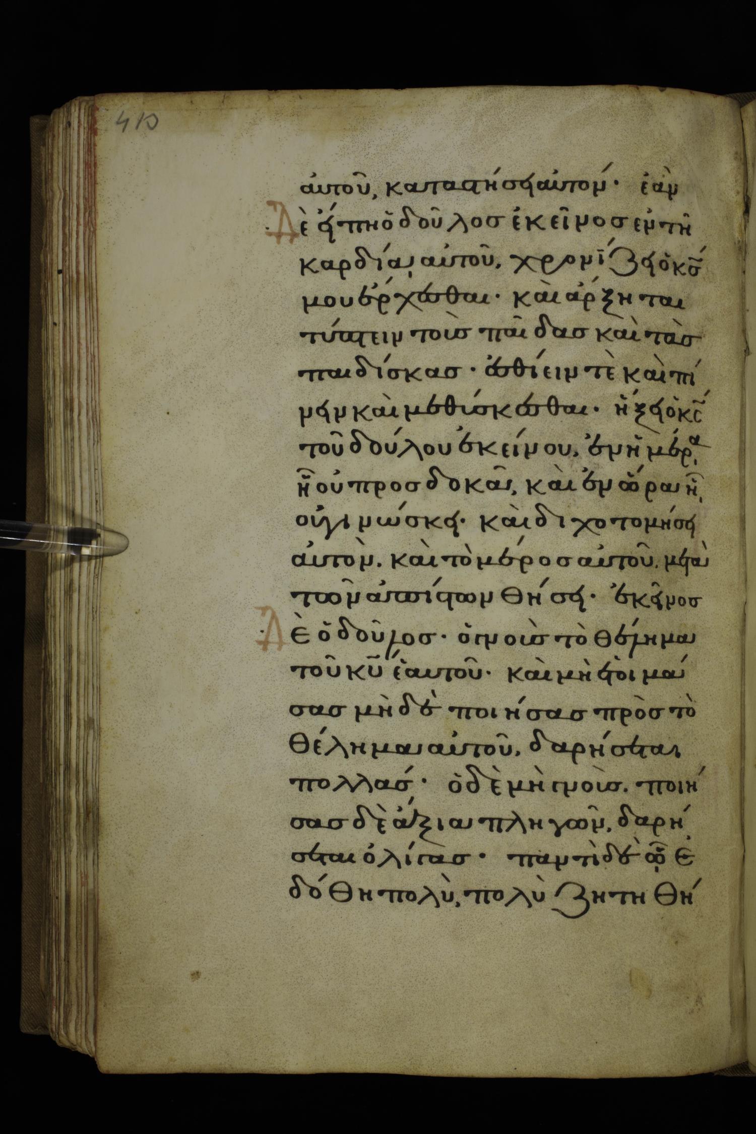 Fourteenth century minuscule of the Gospels on parchment; 332 leaves, 1 column, 20-22 lines per column. Images were taken at the National Library of Greece in Athens.