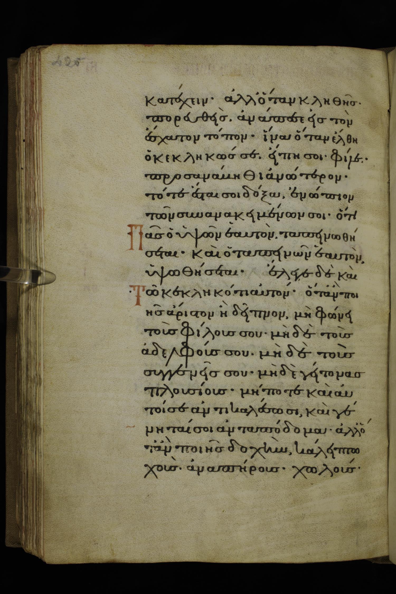 Fourteenth century minuscule of the Gospels on parchment; 332 leaves, 1 column, 20-22 lines per column. Images were taken at the National Library of Greece in Athens.