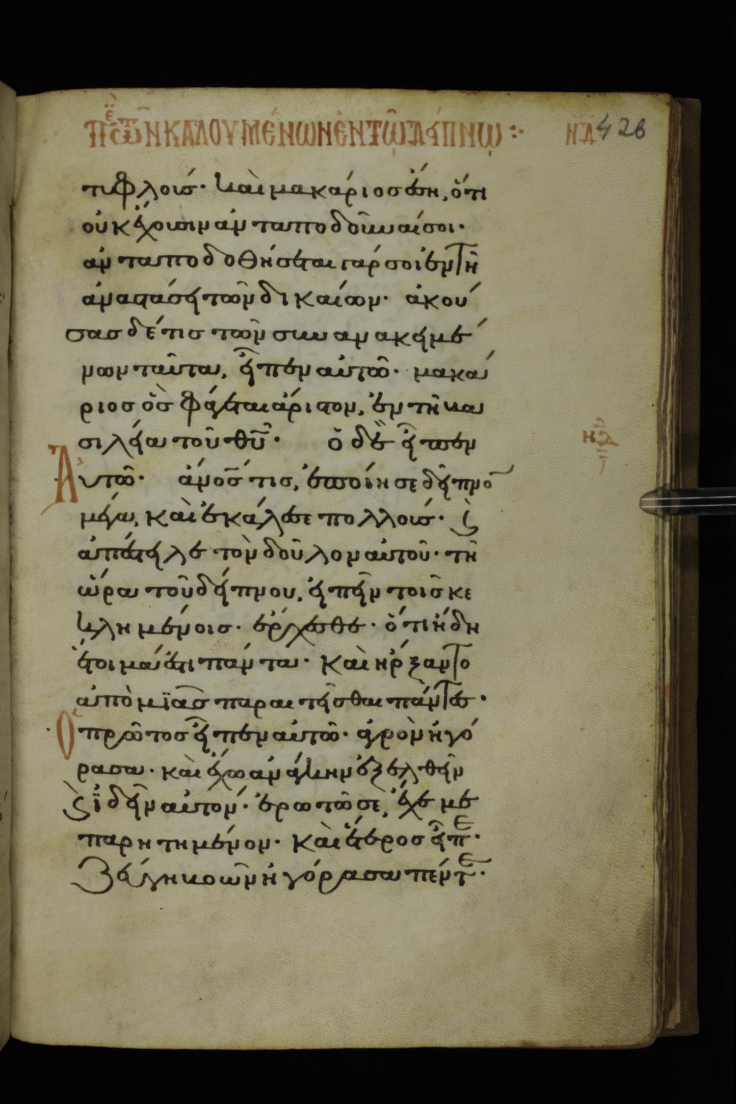 Fourteenth century minuscule of the Gospels on parchment; 332 leaves, 1 column, 20-22 lines per column. Images were taken at the National Library of Greece in Athens.
