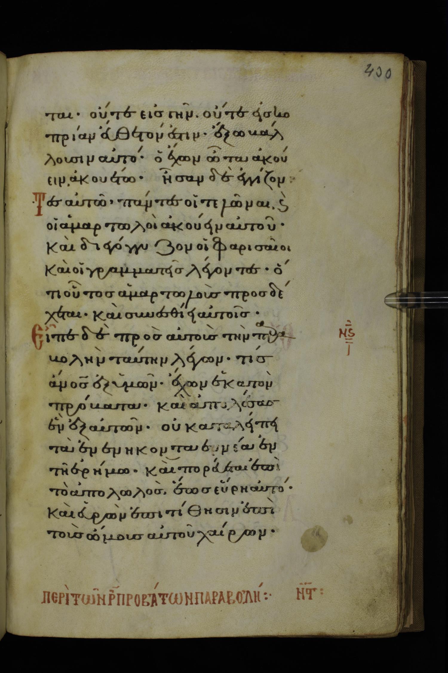 Fourteenth century minuscule of the Gospels on parchment; 332 leaves, 1 column, 20-22 lines per column. Images were taken at the National Library of Greece in Athens.