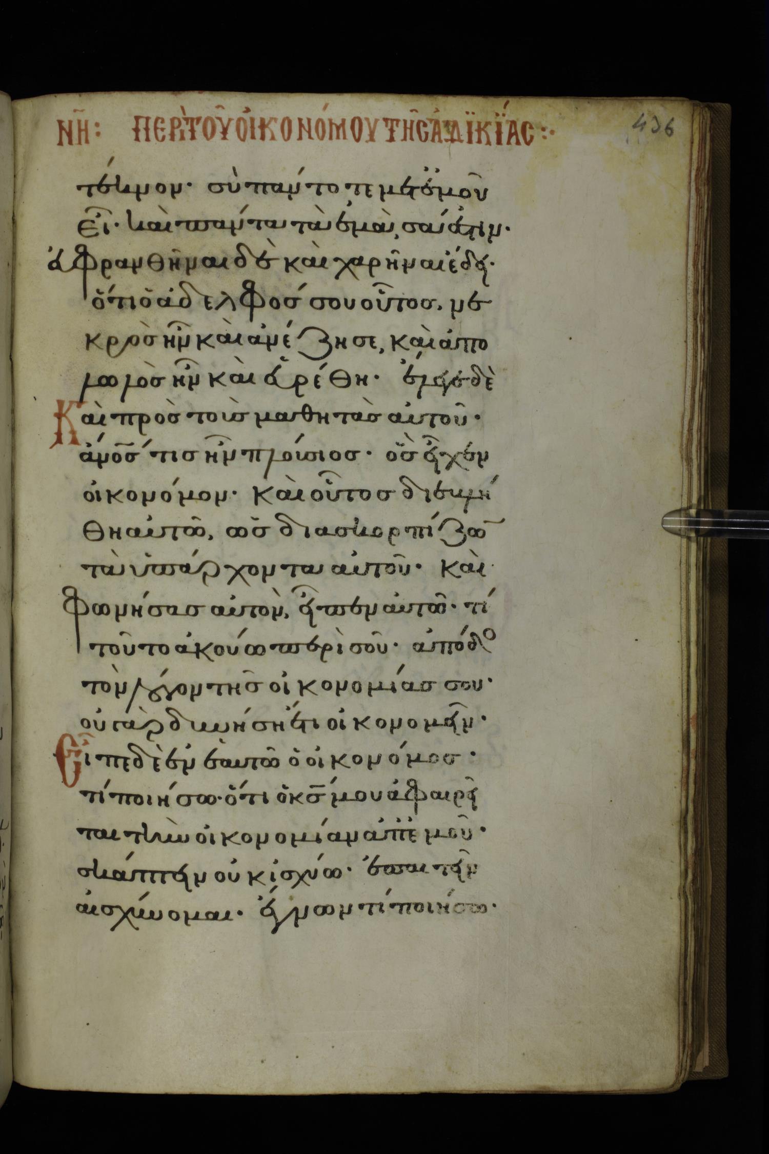 Fourteenth century minuscule of the Gospels on parchment; 332 leaves, 1 column, 20-22 lines per column. Images were taken at the National Library of Greece in Athens.