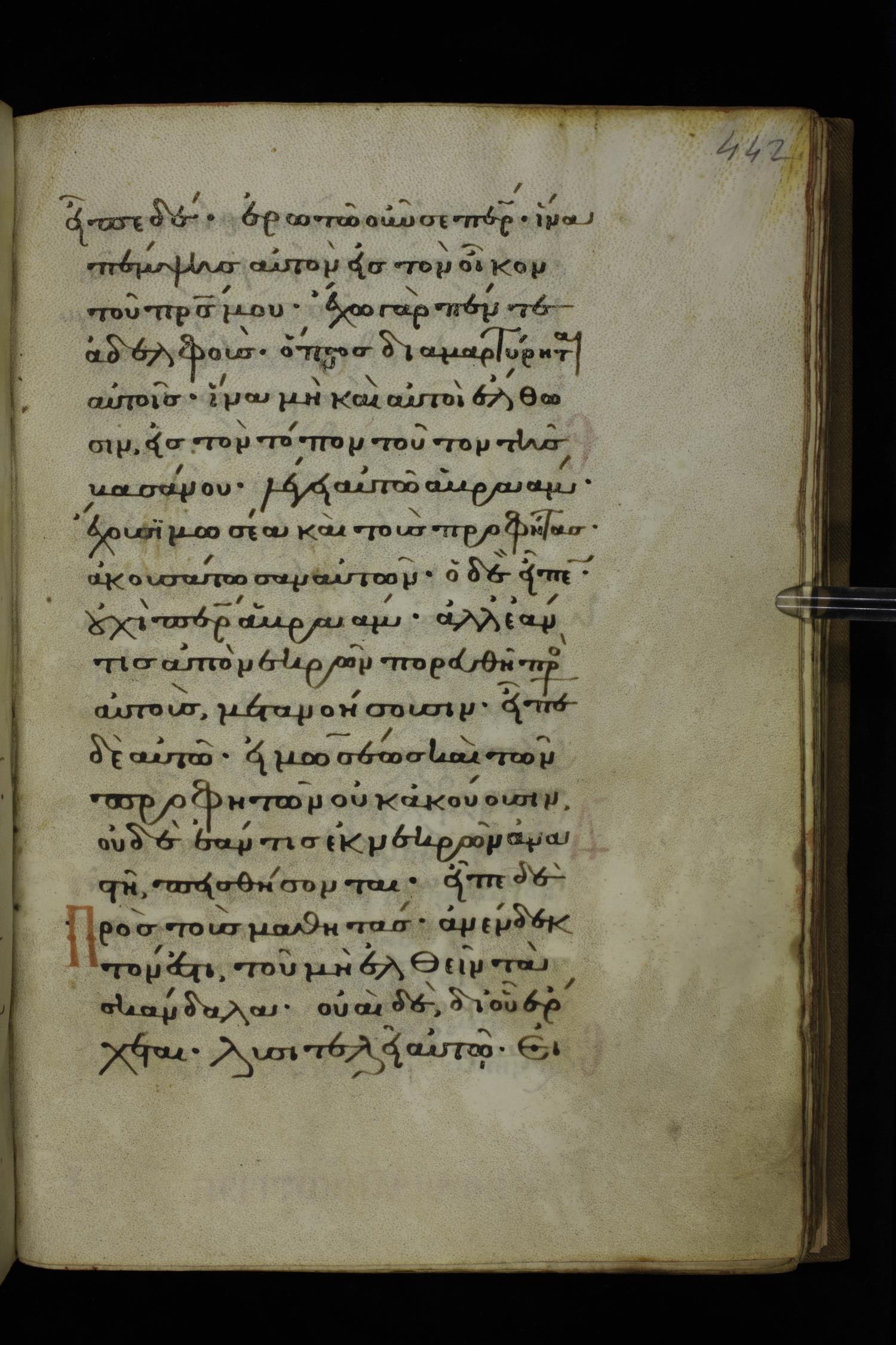 Fourteenth century minuscule of the Gospels on parchment; 332 leaves, 1 column, 20-22 lines per column. Images were taken at the National Library of Greece in Athens.