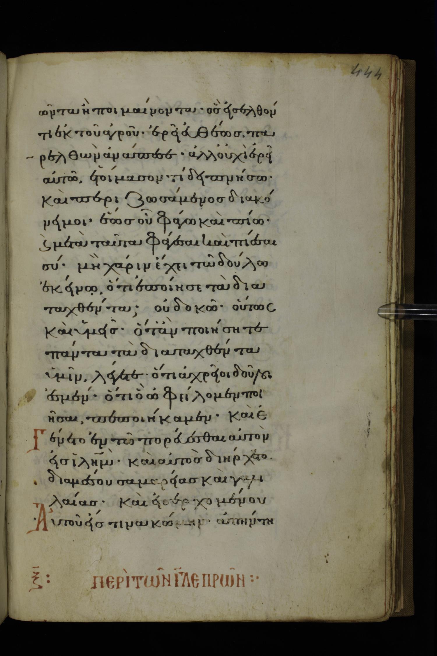Fourteenth century minuscule of the Gospels on parchment; 332 leaves, 1 column, 20-22 lines per column. Images were taken at the National Library of Greece in Athens.