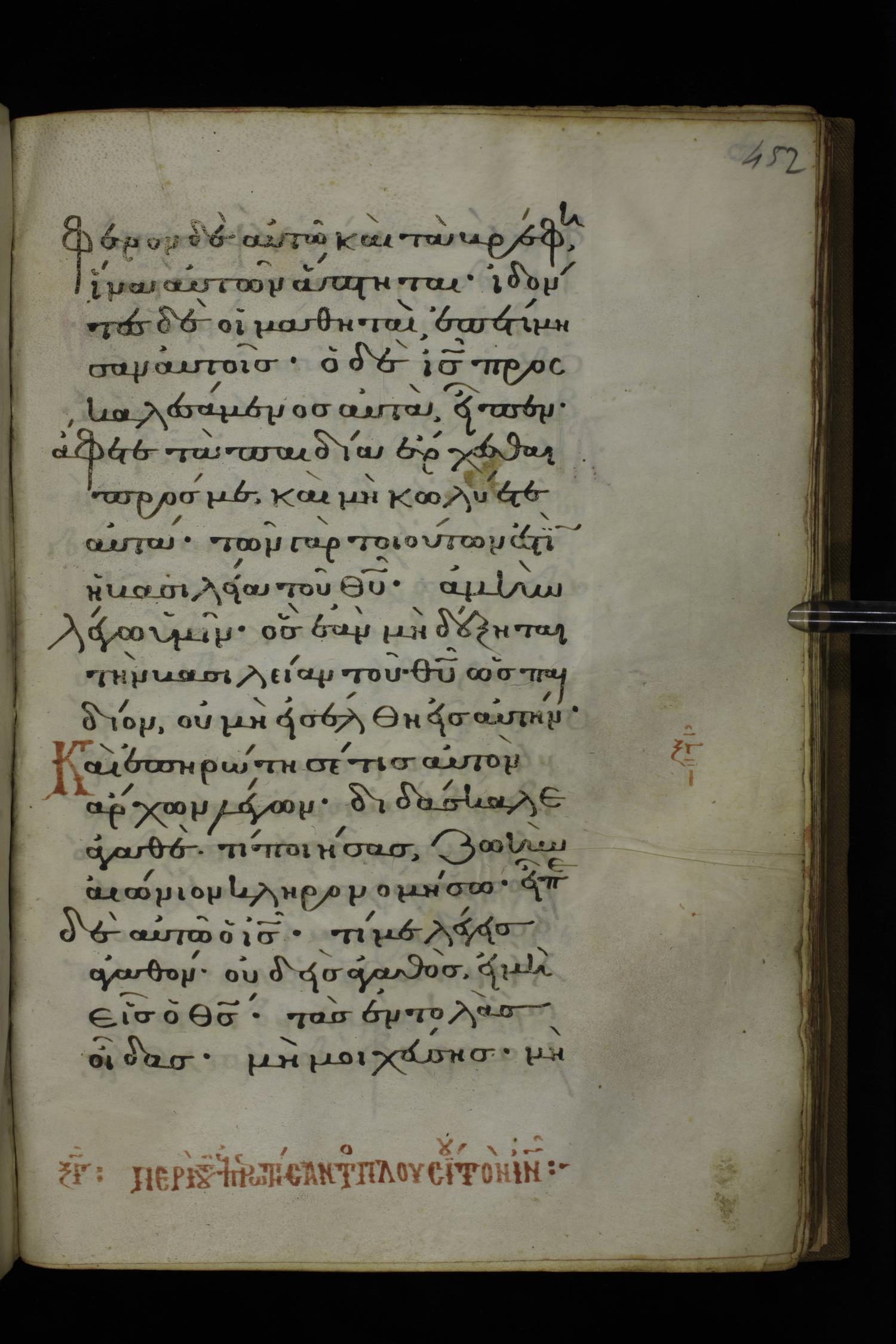 Fourteenth century minuscule of the Gospels on parchment; 332 leaves, 1 column, 20-22 lines per column. Images were taken at the National Library of Greece in Athens.