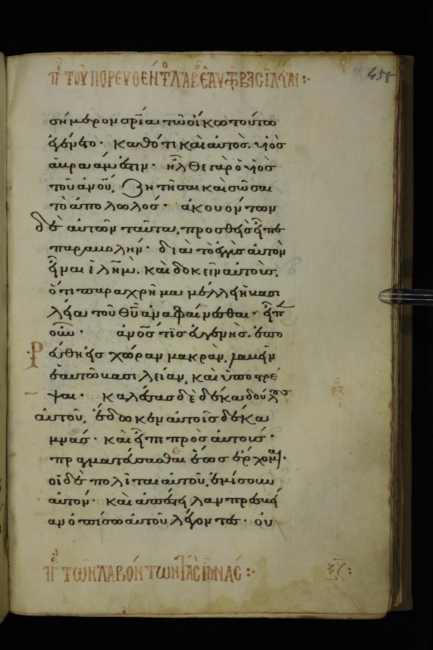 Fourteenth century minuscule of the Gospels on parchment; 332 leaves, 1 column, 20-22 lines per column. Images were taken at the National Library of Greece in Athens.