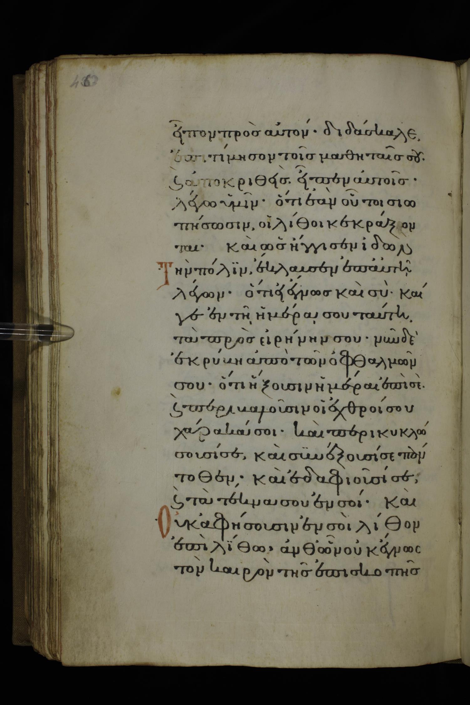 Fourteenth century minuscule of the Gospels on parchment; 332 leaves, 1 column, 20-22 lines per column. Images were taken at the National Library of Greece in Athens.