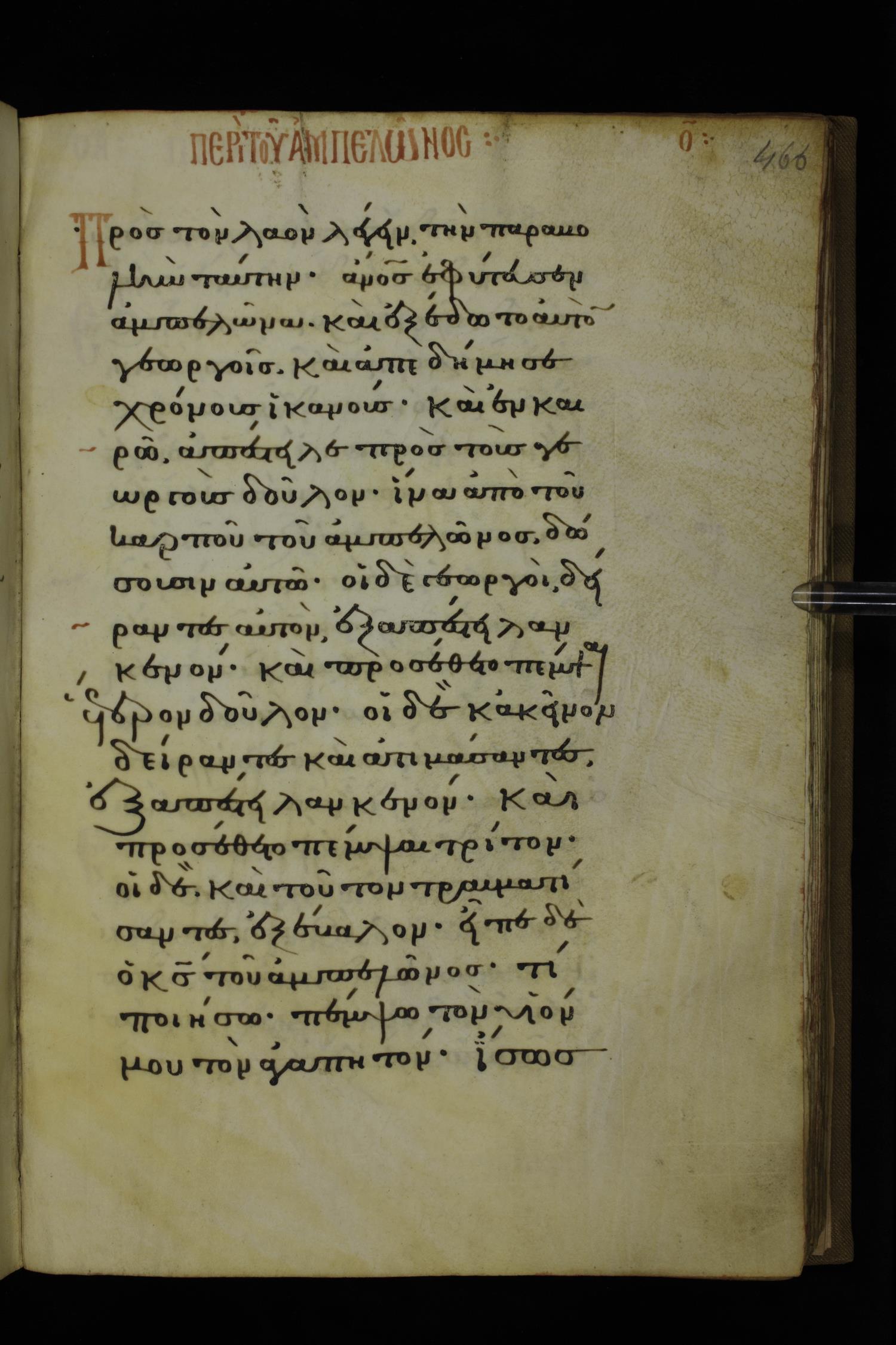 Fourteenth century minuscule of the Gospels on parchment; 332 leaves, 1 column, 20-22 lines per column. Images were taken at the National Library of Greece in Athens.