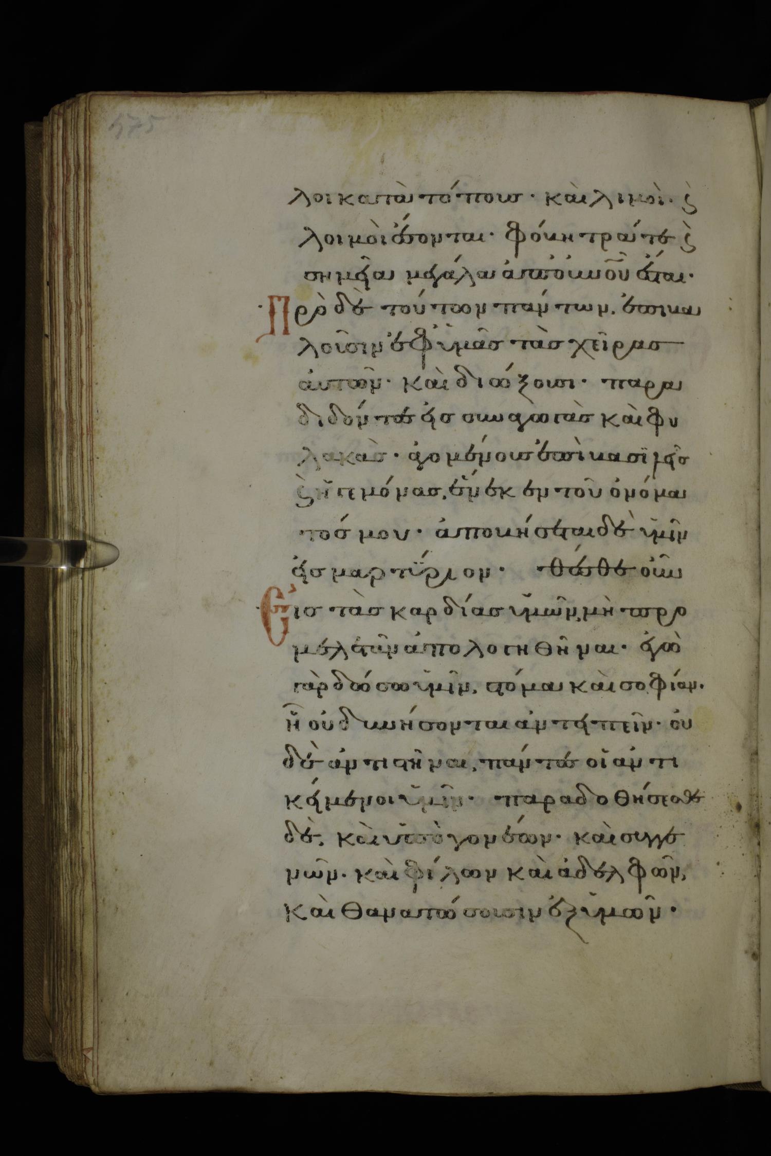 Fourteenth century minuscule of the Gospels on parchment; 332 leaves, 1 column, 20-22 lines per column. Images were taken at the National Library of Greece in Athens.