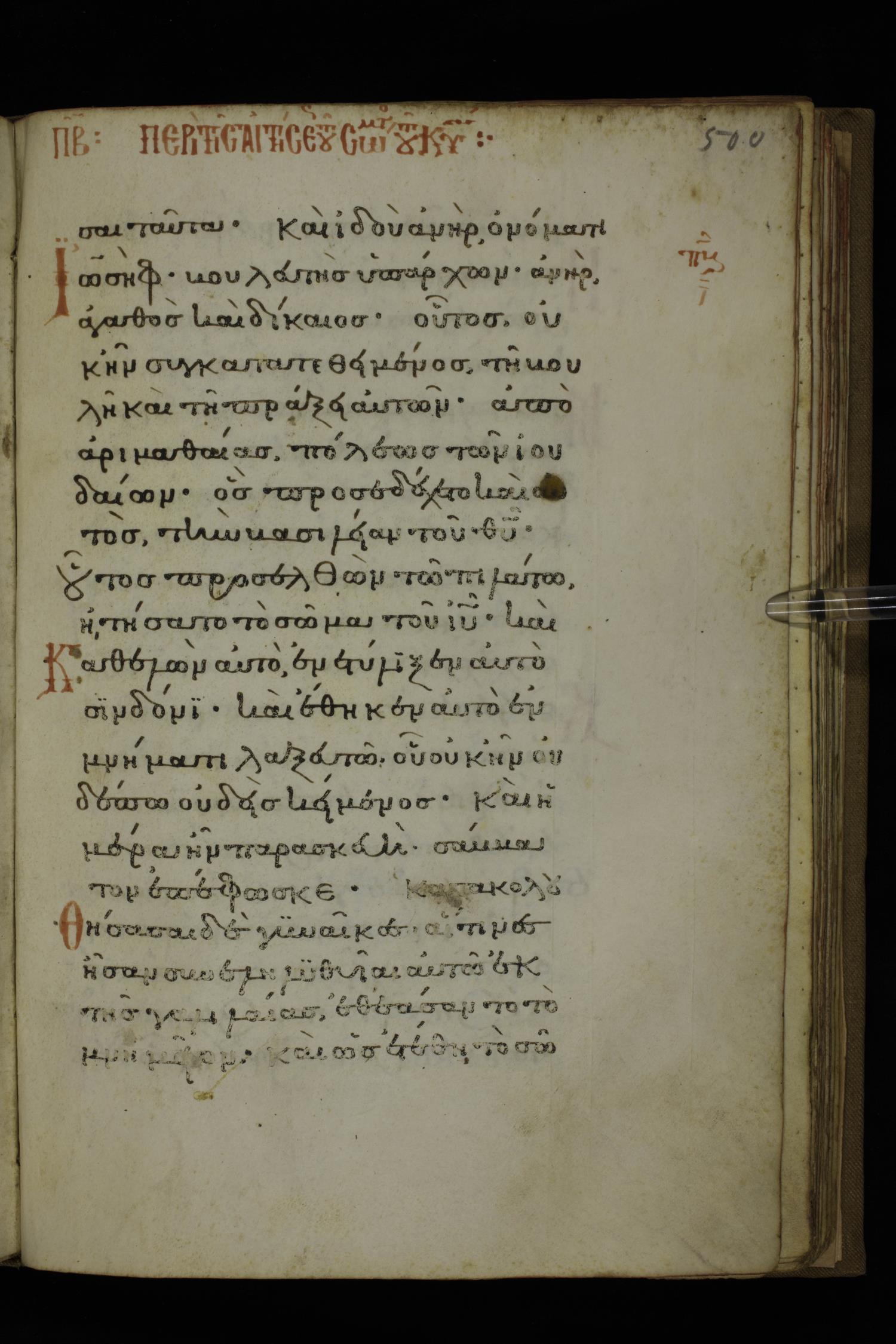 Fourteenth century minuscule of the Gospels on parchment; 332 leaves, 1 column, 20-22 lines per column. Images were taken at the National Library of Greece in Athens.