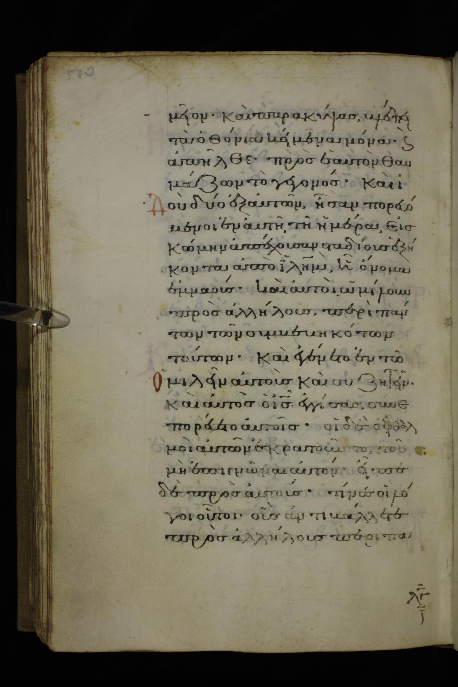 Fourteenth century minuscule of the Gospels on parchment; 332 leaves, 1 column, 20-22 lines per column. Images were taken at the National Library of Greece in Athens.
