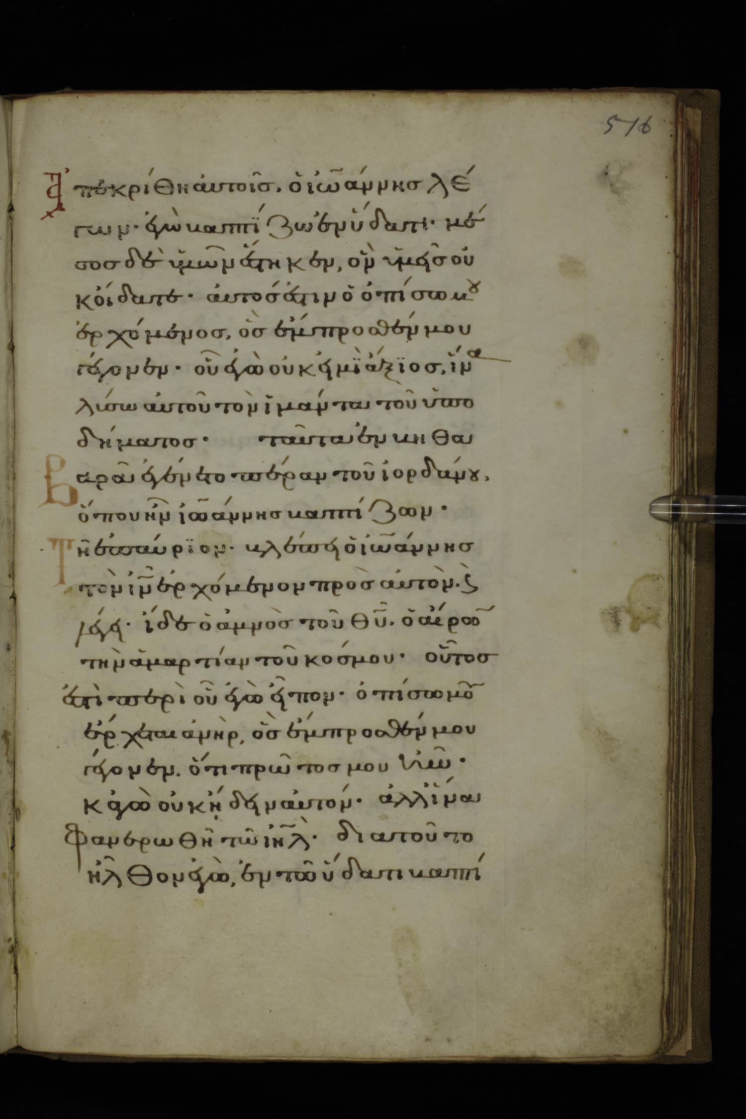 Fourteenth century minuscule of the Gospels on parchment; 332 leaves, 1 column, 20-22 lines per column. Images were taken at the National Library of Greece in Athens.