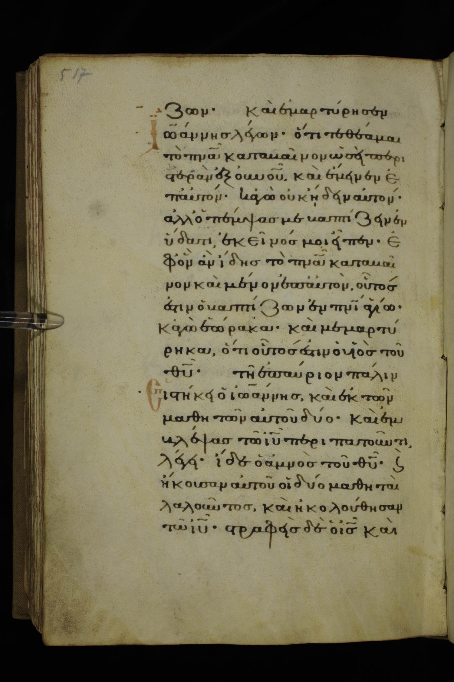 Fourteenth century minuscule of the Gospels on parchment; 332 leaves, 1 column, 20-22 lines per column. Images were taken at the National Library of Greece in Athens.