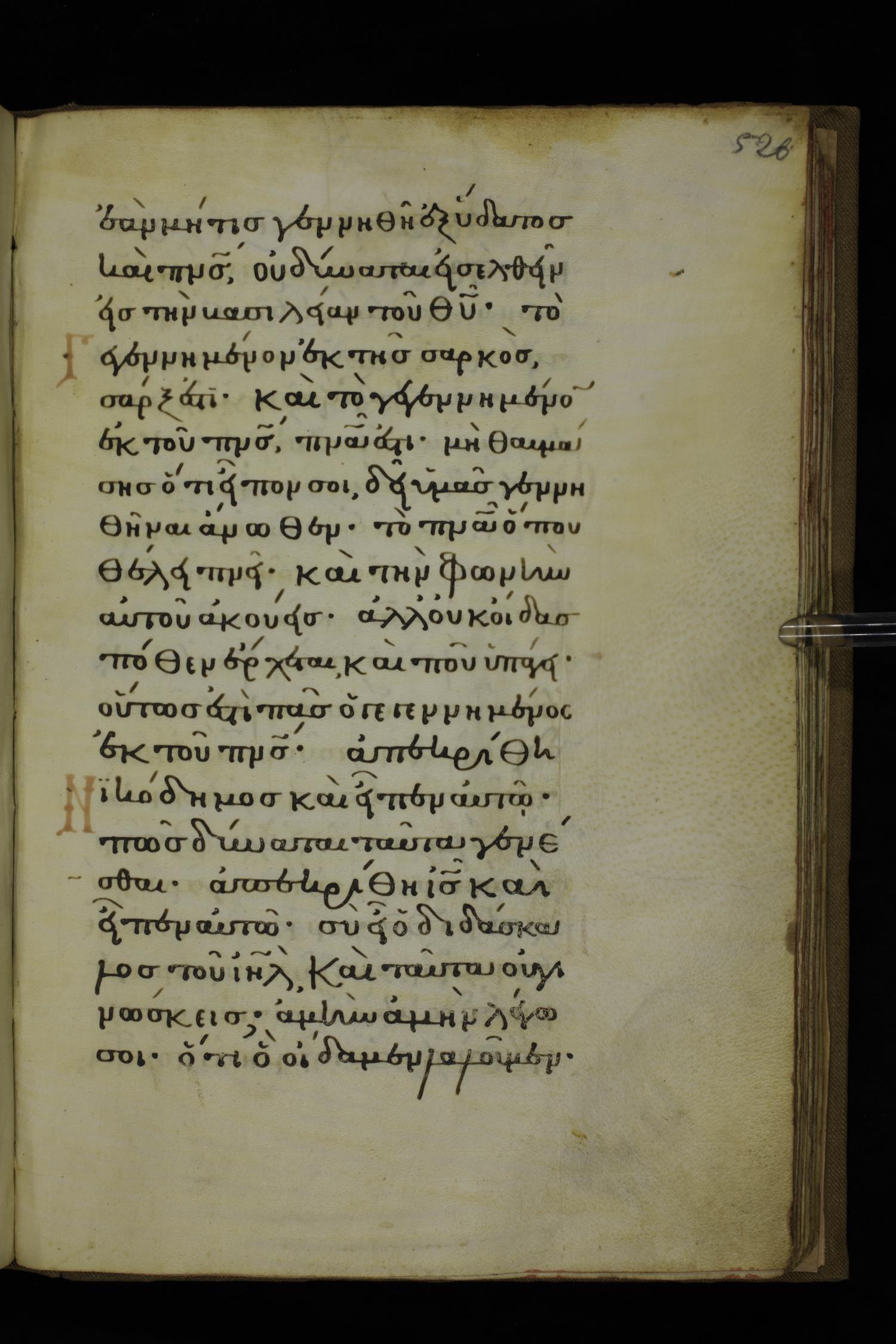Fourteenth century minuscule of the Gospels on parchment; 332 leaves, 1 column, 20-22 lines per column. Images were taken at the National Library of Greece in Athens.