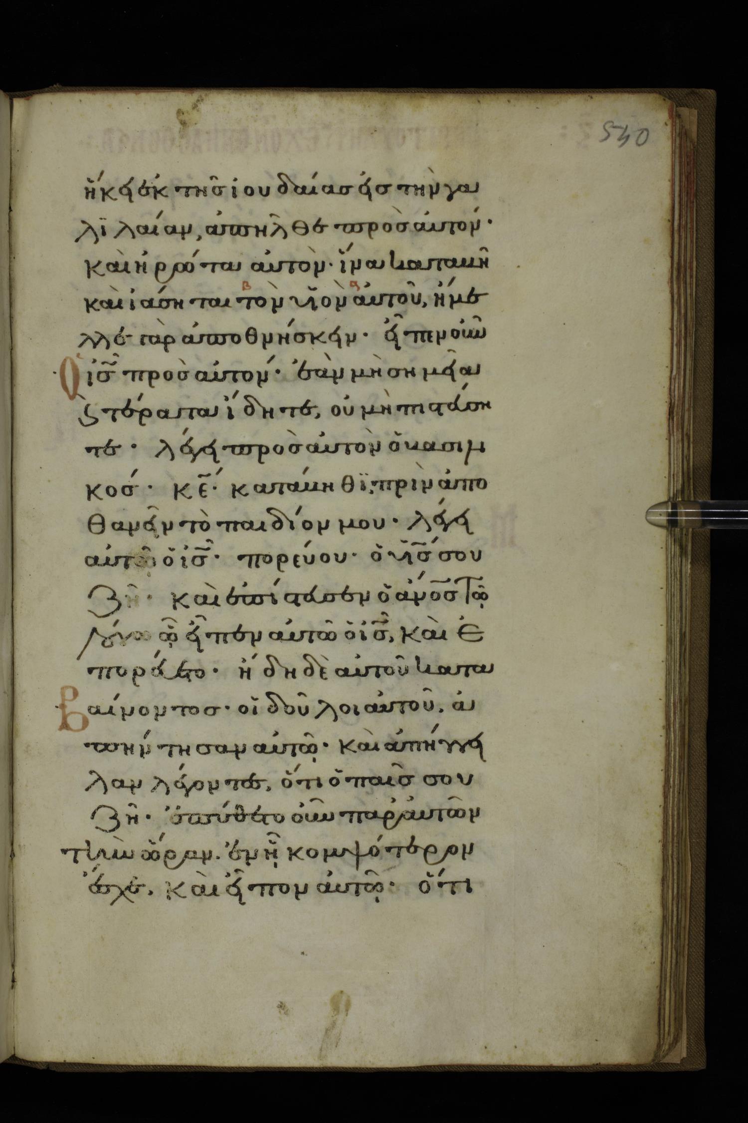 Fourteenth century minuscule of the Gospels on parchment; 332 leaves, 1 column, 20-22 lines per column. Images were taken at the National Library of Greece in Athens.