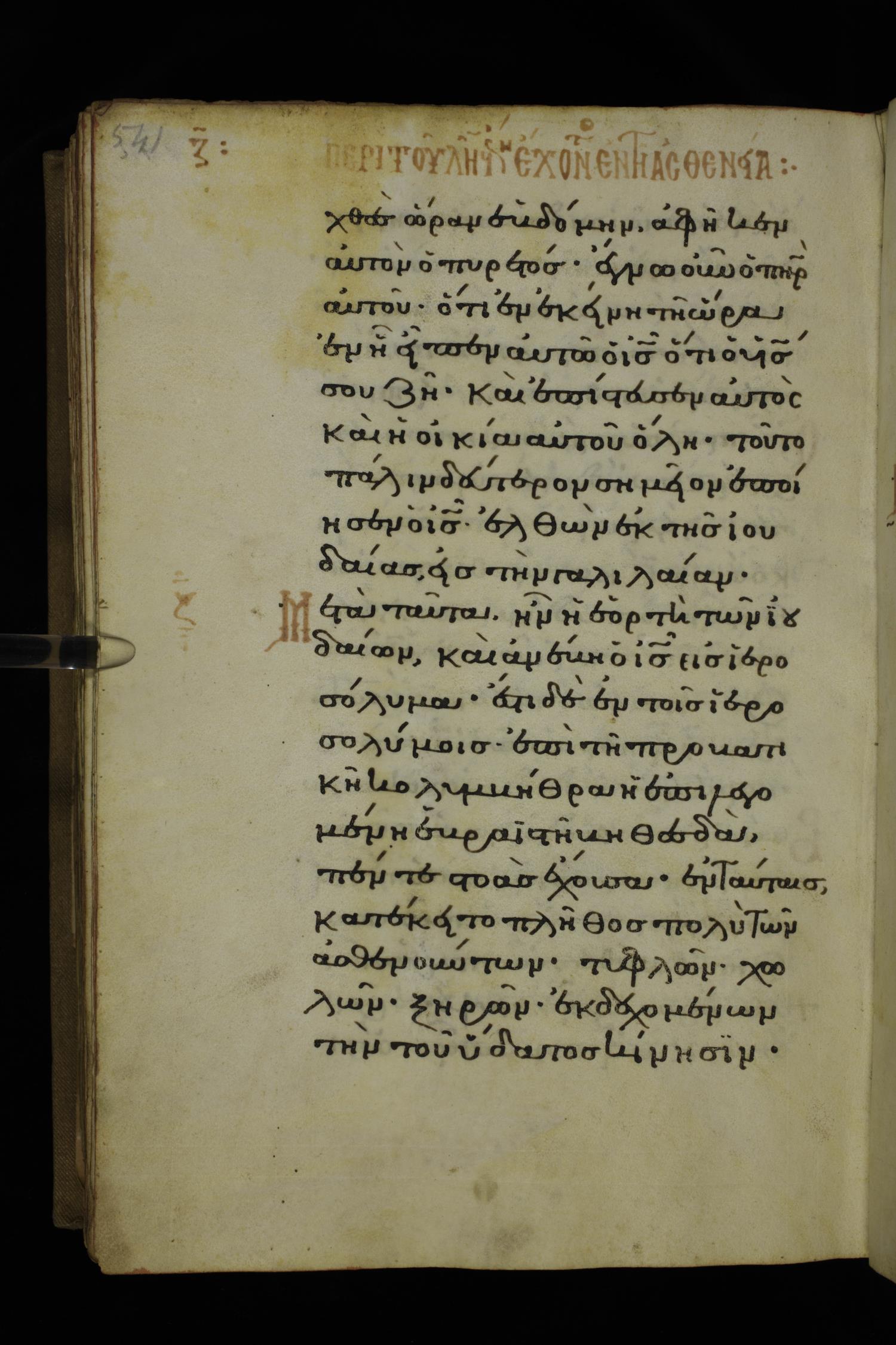 Fourteenth century minuscule of the Gospels on parchment; 332 leaves, 1 column, 20-22 lines per column. Images were taken at the National Library of Greece in Athens.