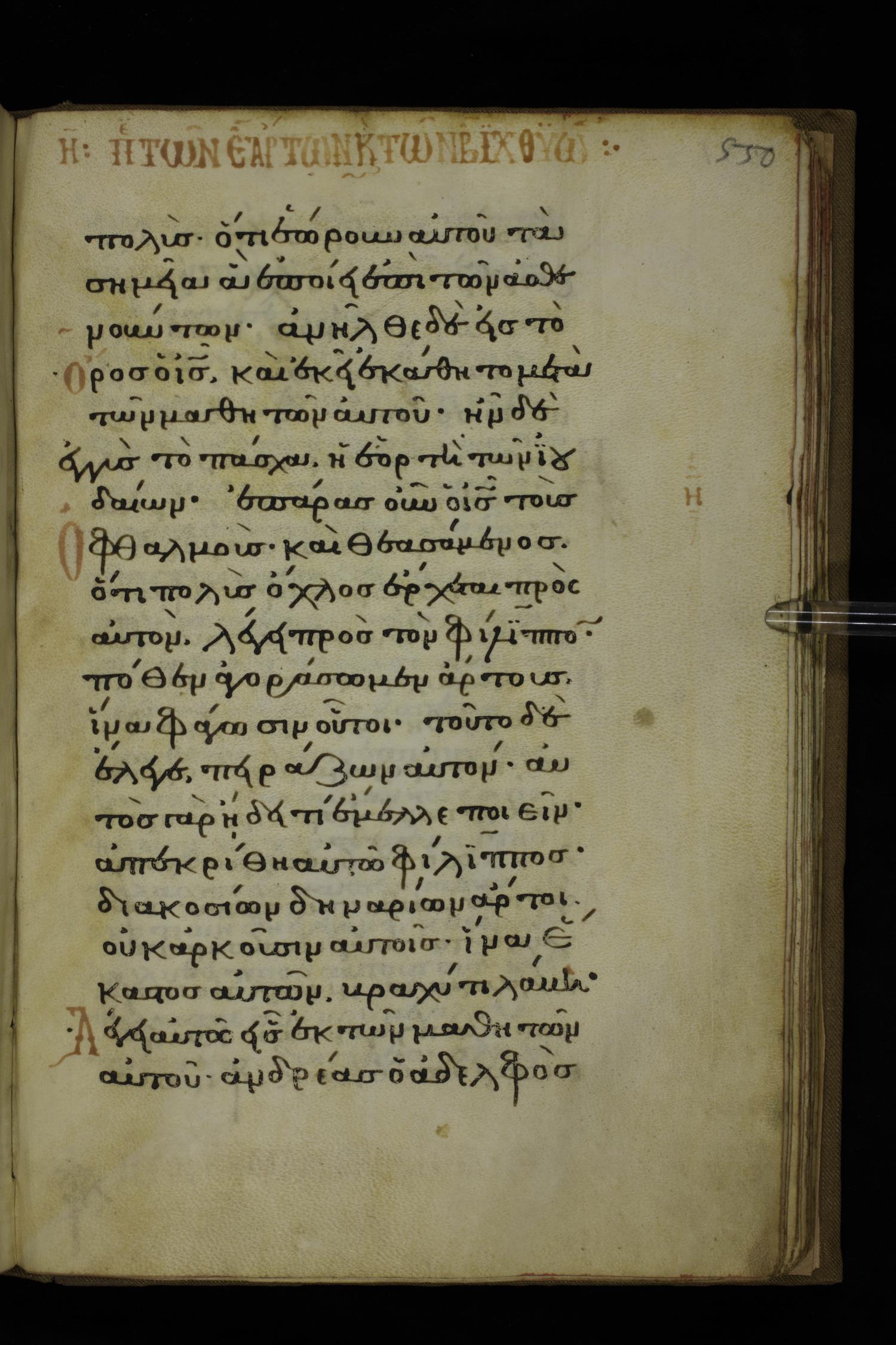 Fourteenth century minuscule of the Gospels on parchment; 332 leaves, 1 column, 20-22 lines per column. Images were taken at the National Library of Greece in Athens.